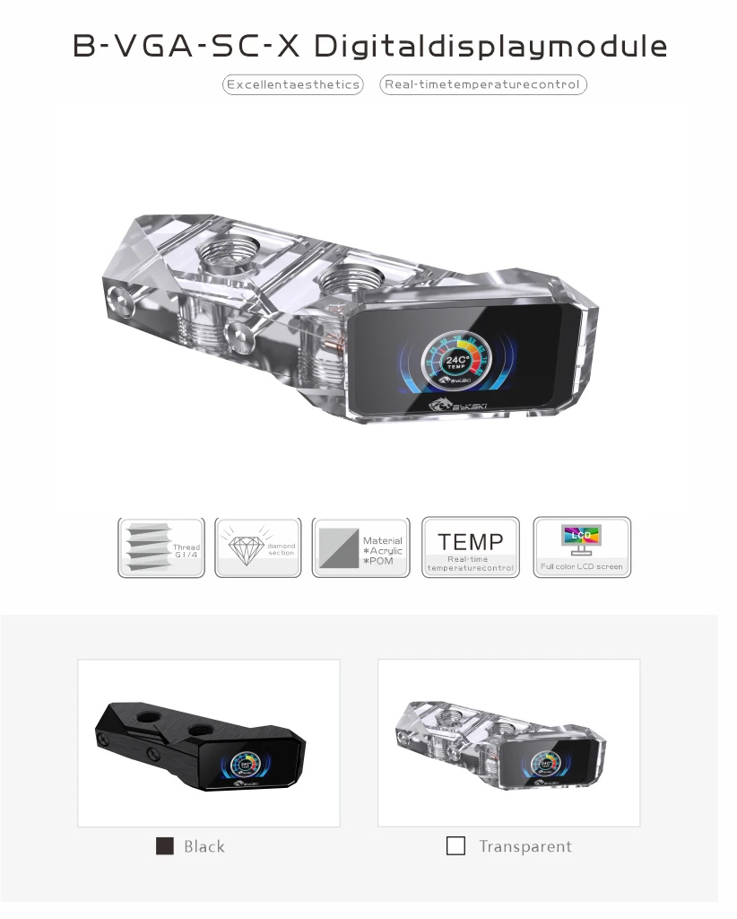 Bykski B-VGA-SC-X GPU СВЕТОДИОДНЫЙ монитор с цифровым дисплеем темп...