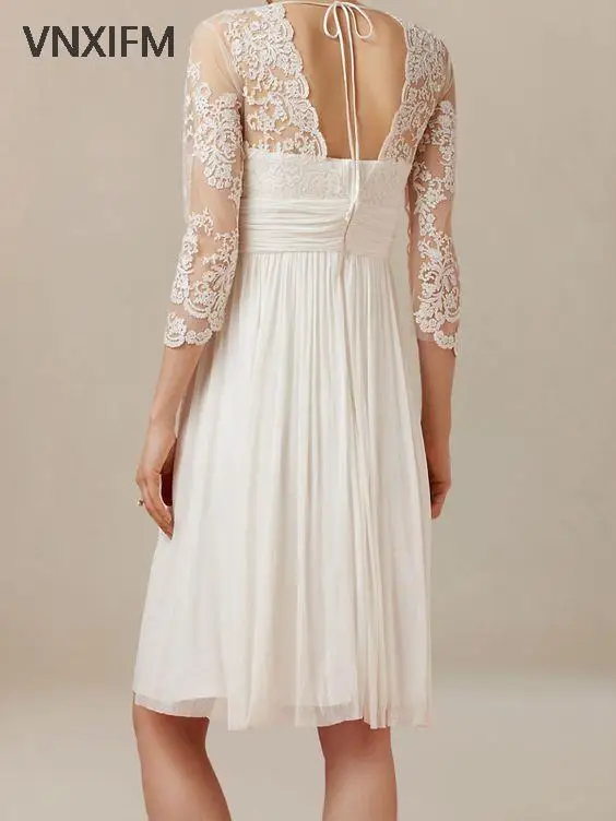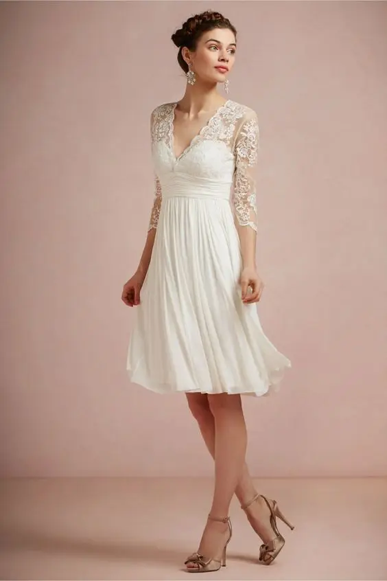 Женское свадебное платье до колен, белое платье цвета слоновой кости с V-образным вырезом и длинными рукавами, кружевное платье в стиле бохо, 2020