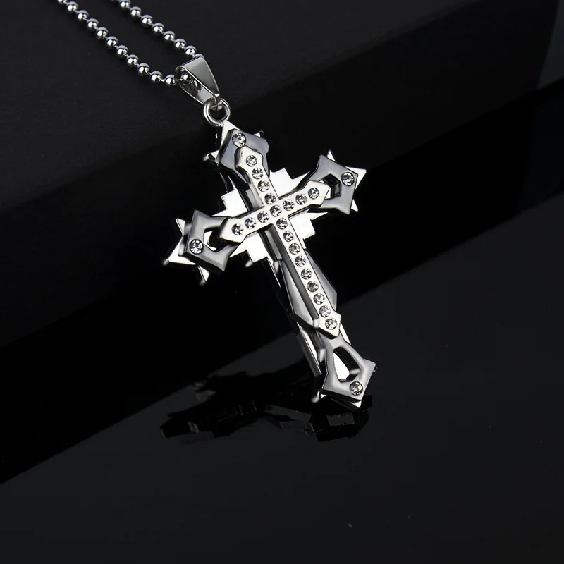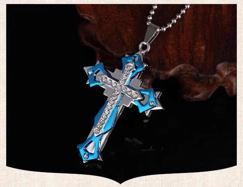 Европейская и американская популярная индивидуальная трехслойная подвеска-свитер из нержавеющей стали с кристаллами и крестом