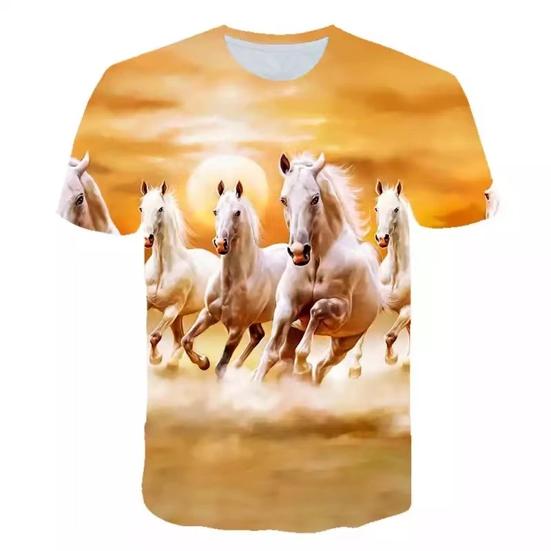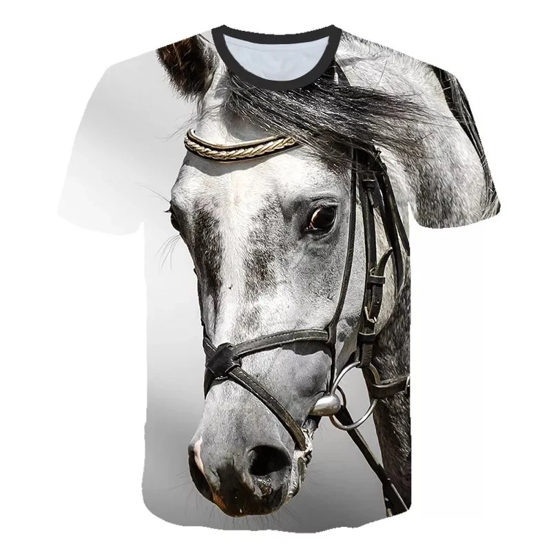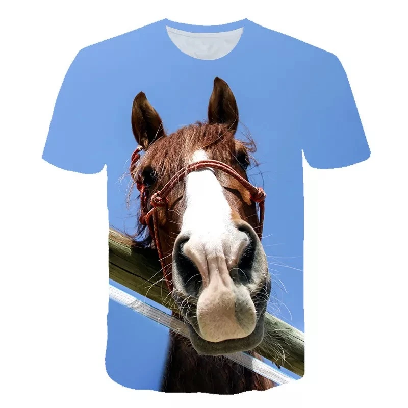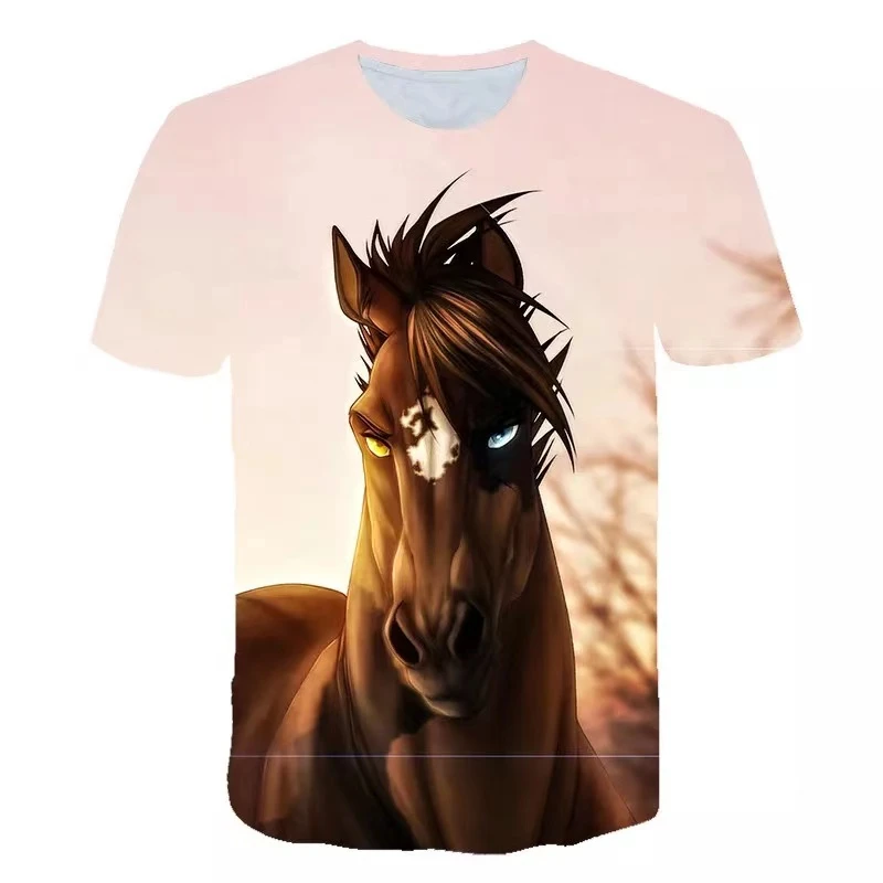 Новинка лета 2021, футболка с 3d-рисунком лошади, Повседневная футб...