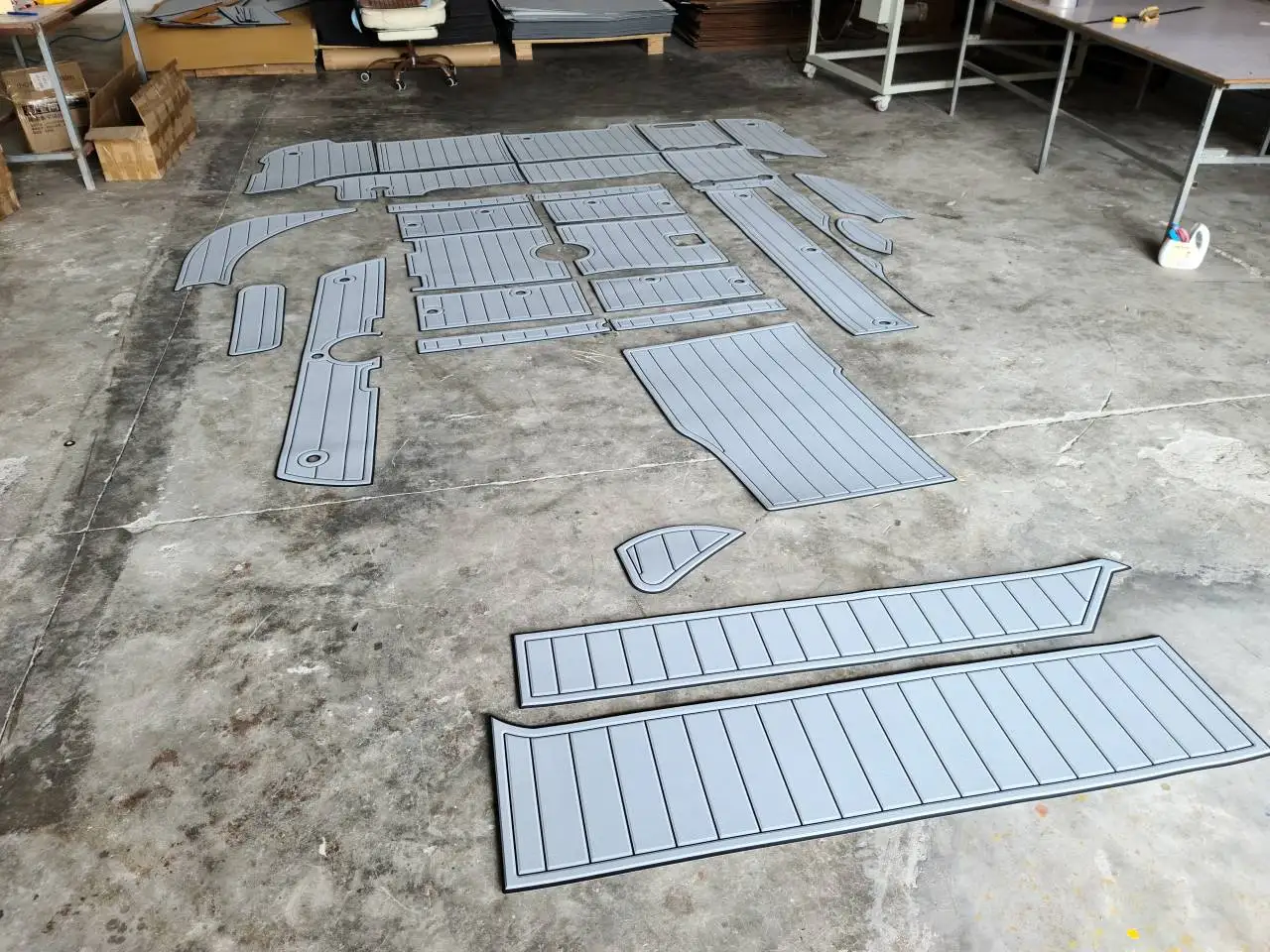 Мы также можем изготовить индивидуальный настил из ЭВА тикового дерева с помощью шаблона или полноразмерного шаблона, который вы можете предоставить нам.