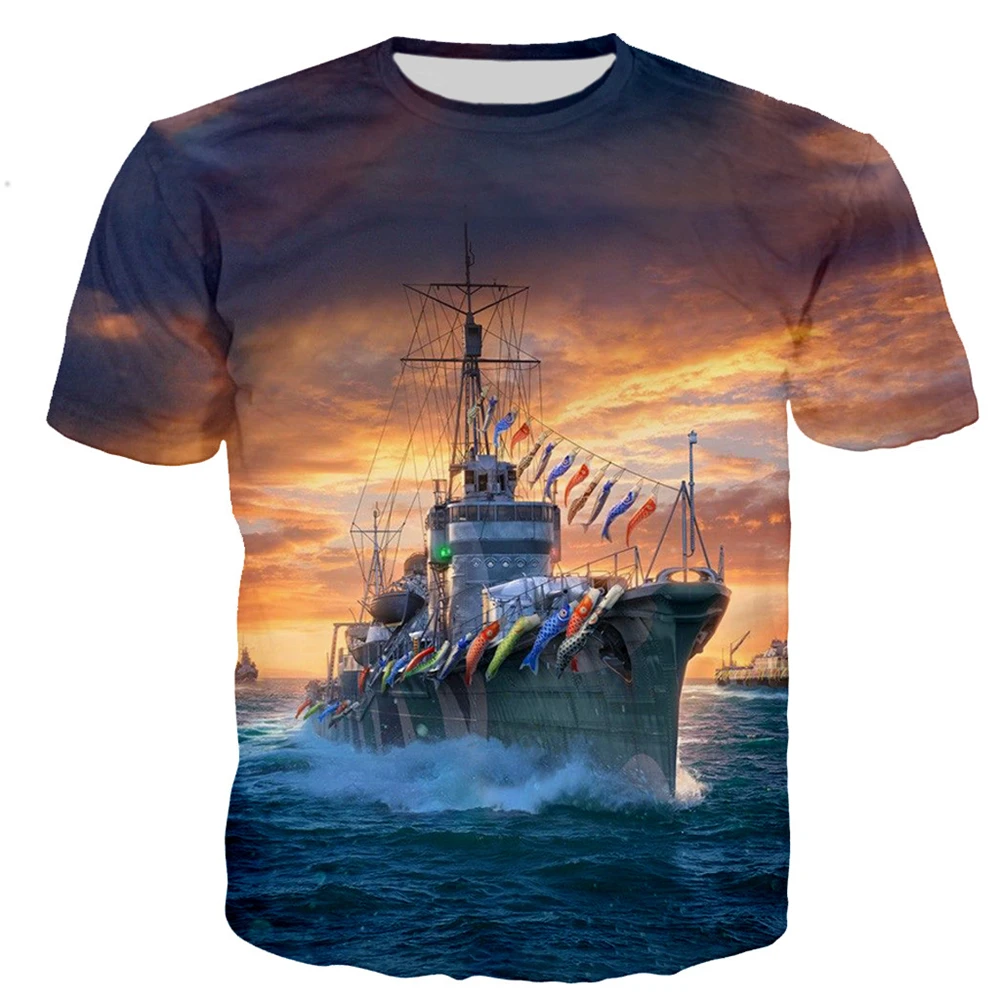 Мужские и женские футболки с 3D-принтом Warship, повседневные футболки в стиле Харадзюку, в стиле хип-хоп, Популярные топы из полиэстера с круглым вырезом, 2021