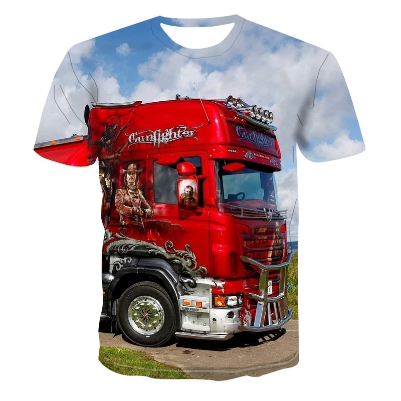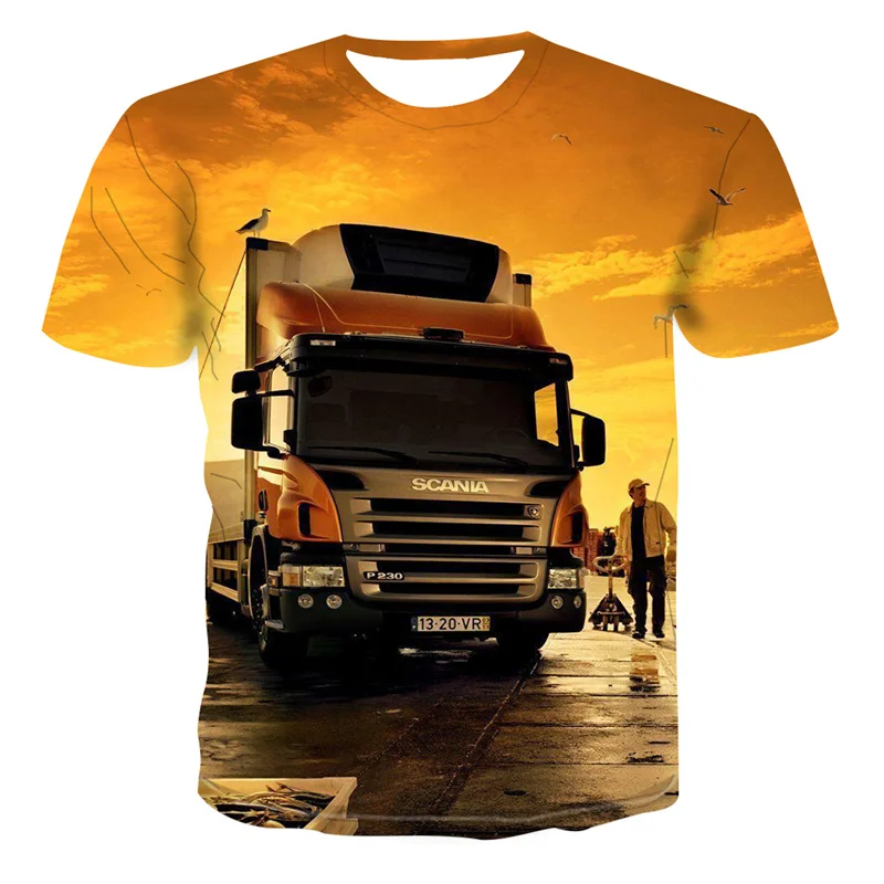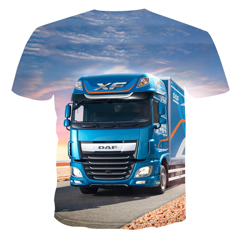 Футболка мужская оверсайз с 3D-принтом, модный топ с круглым вырезом и коротким рукавом, уличная одежда, тягач, Харадзюку, лето