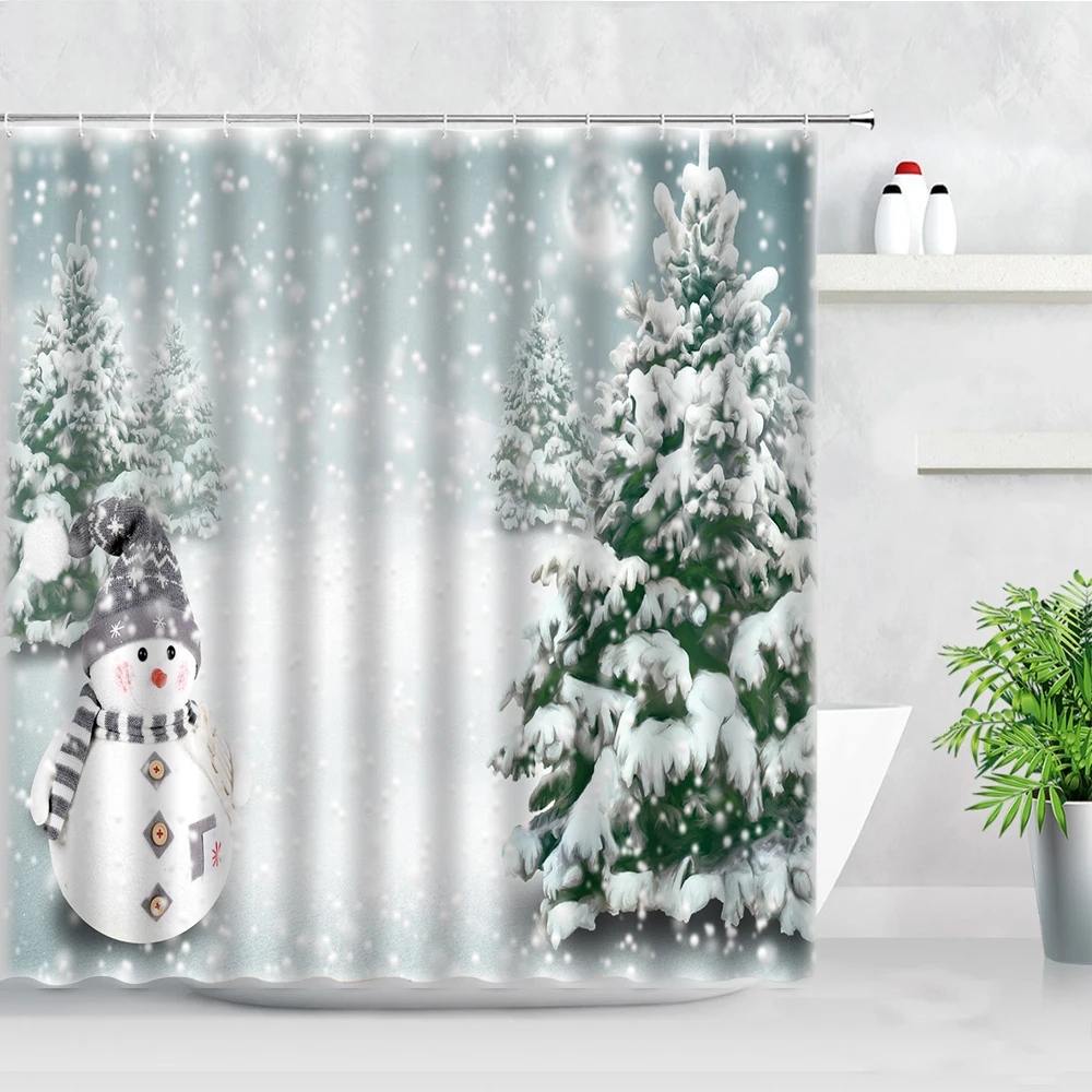 Милые рождественские занавески для душа с изображением снеговика, леса, кедра, зимний естественный ландшафт, новогодний и Рождественский Декор, занавеска для ванной комнаты с крючком