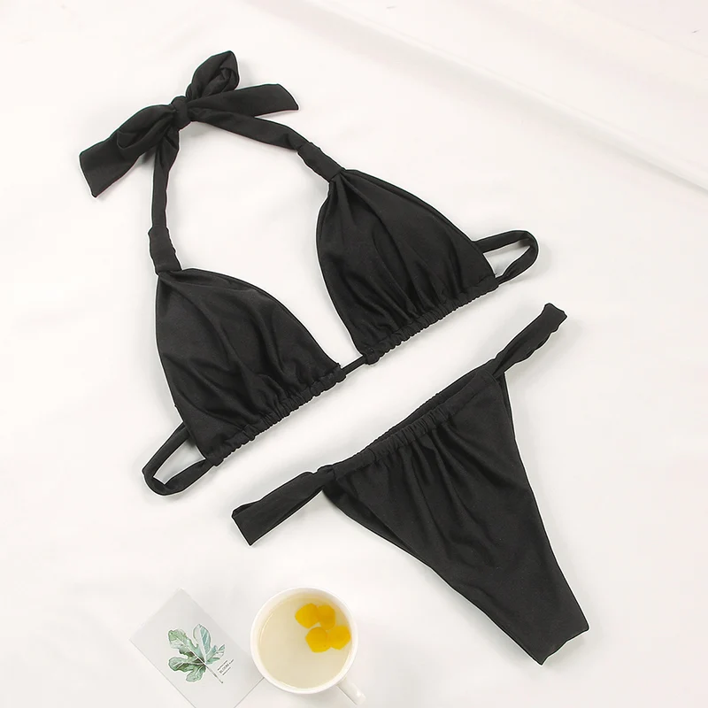 Пикантные бикини Rinabe 2021, бандажный купальник, треугольный купальник пуш-ап, Женский однотонный купальный костюм, комплект бикини со стрингами, женская пляжная одежда