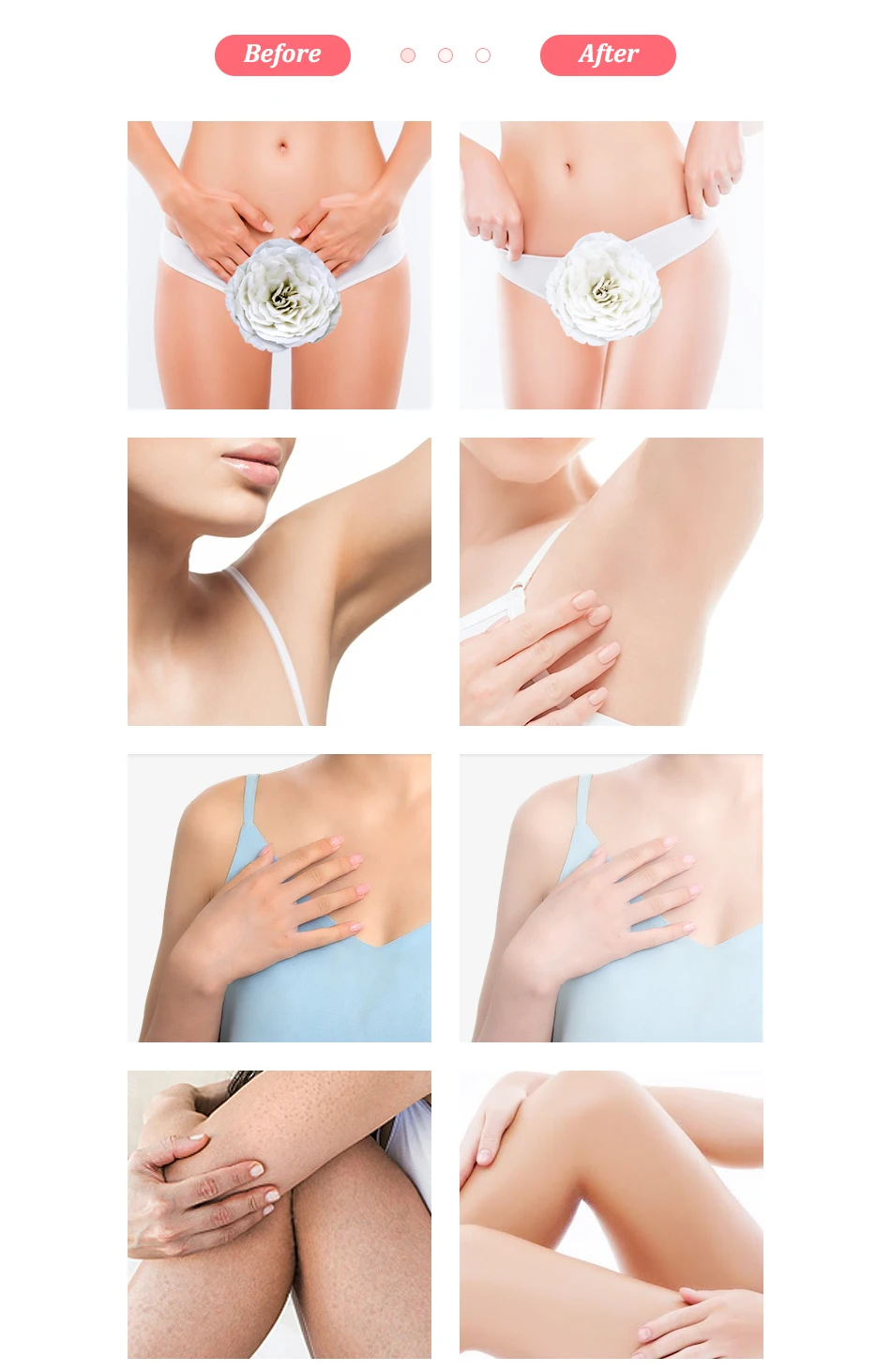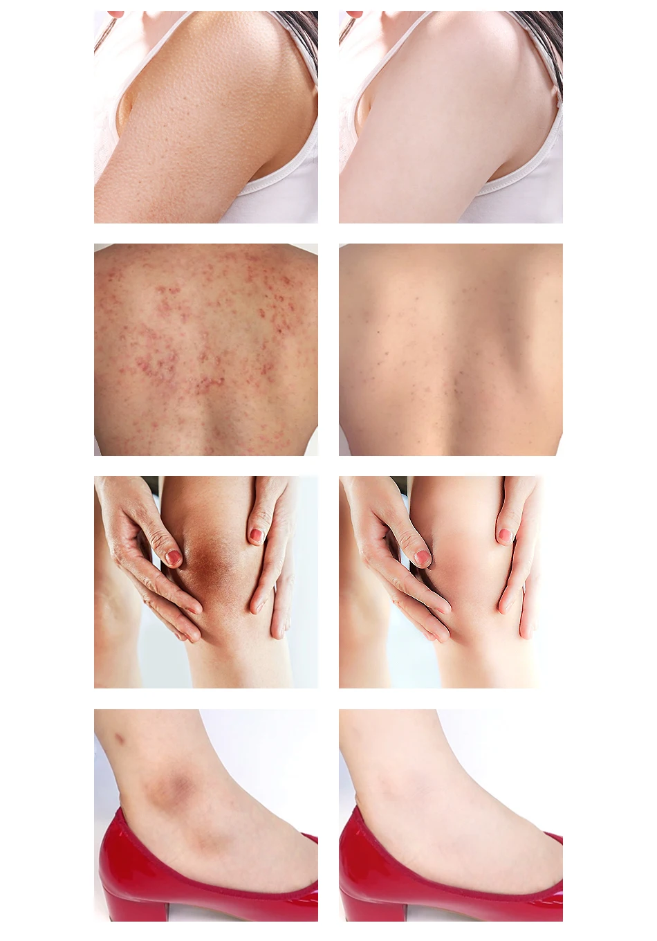 Эффективно лечит отбеливание, частые части, подмышки, бедра, локти, лодыжки, неровную кожу, прыщи, закрытый рот, спину