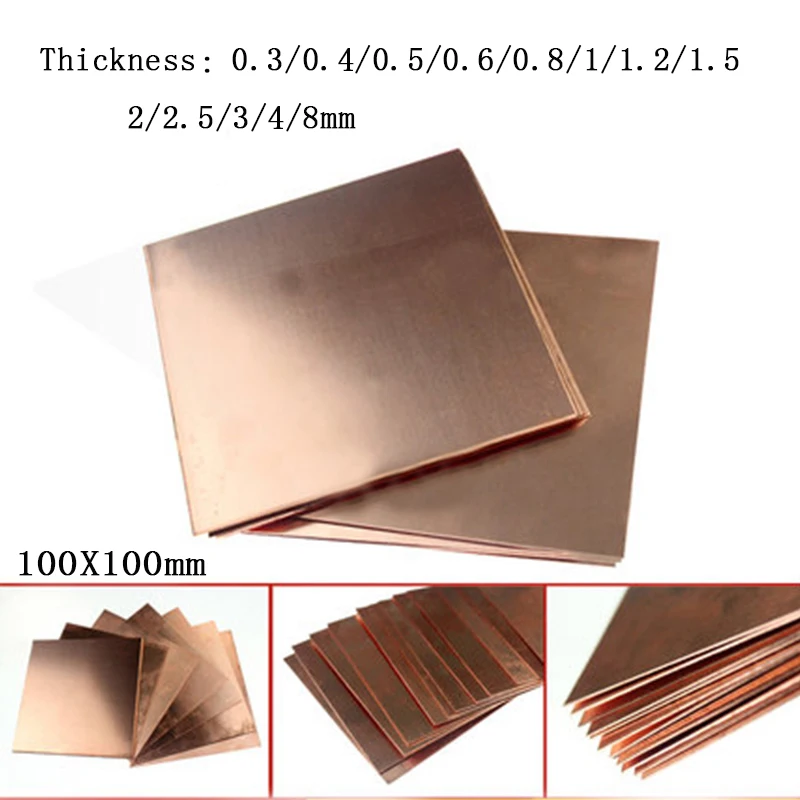 1 шт 100x100 толщиной 0,3-8 мм 99.9% Чистый медный металлический лист пластина Хорошее механическое поведение и термостабильность