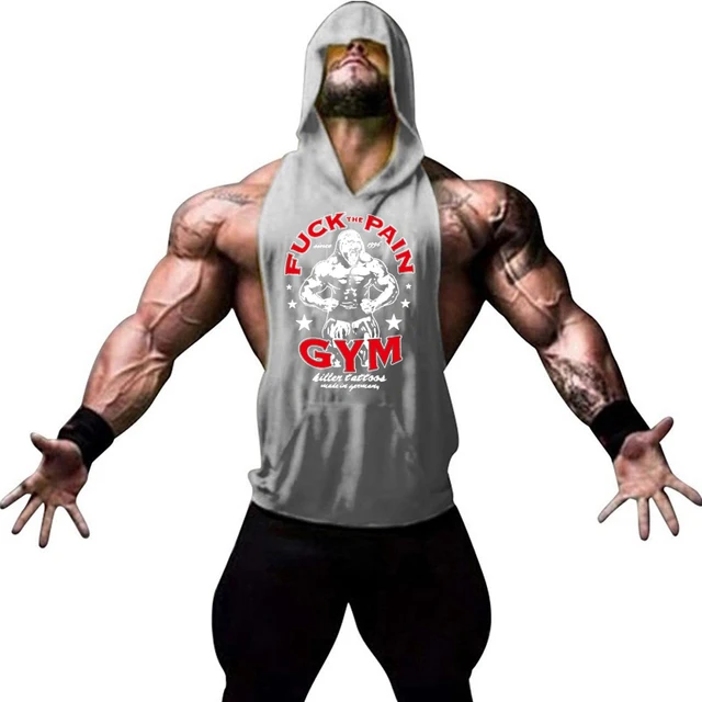 Майка мужская с капюшоном, тренировочная майка для бодибилдинга и ф...