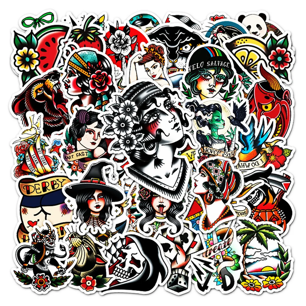 50 шт. в ретро-стиле Old School Tattoo Стиль Стикеры Холодильник Ск...