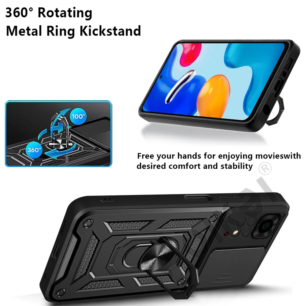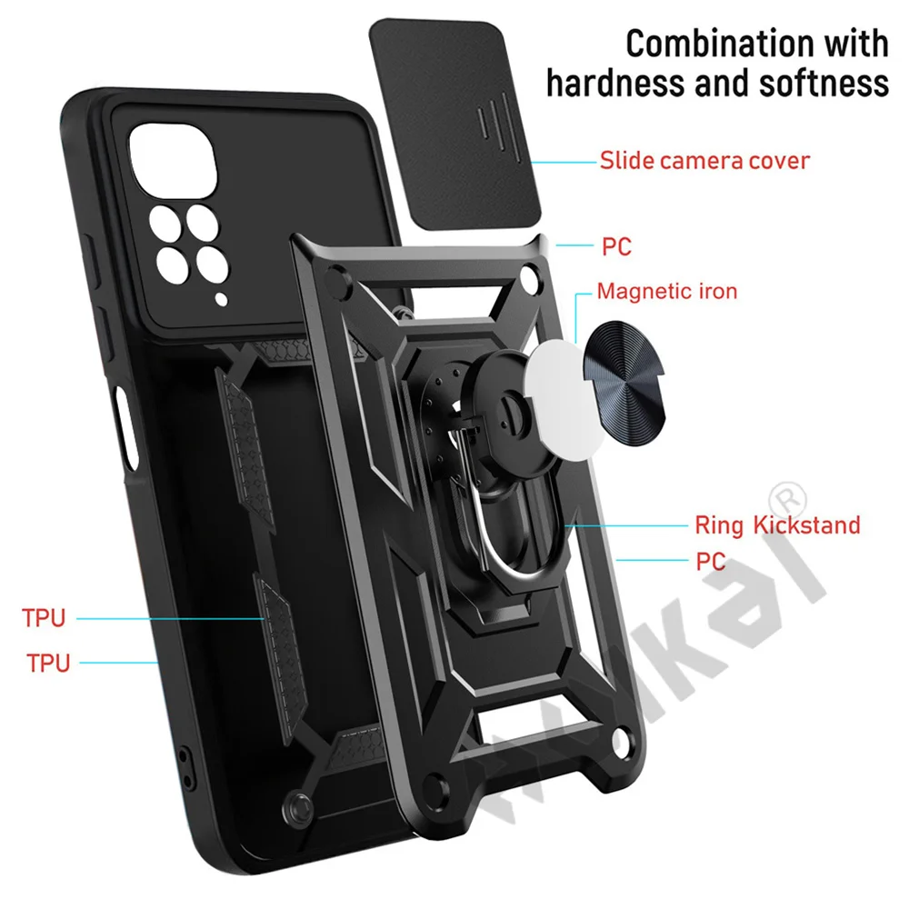Защита объектива камеры противоударный бронированный Магнитный чехол для Xiaomi Mi 11T 11 Lite Redmi Note 11 10 Pro Max Poco X4 Pro слайдер чехол