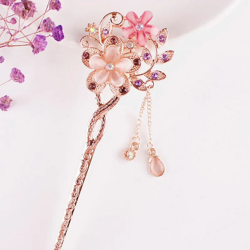 Заколка для волос, металлическая, в китайском стиле, с цветами, для...