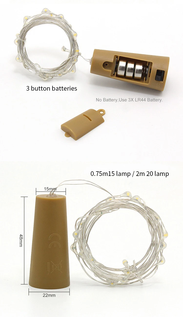 6 шт.лот пробковый светильник для винной бутылки 2 м 20 светодиодов...