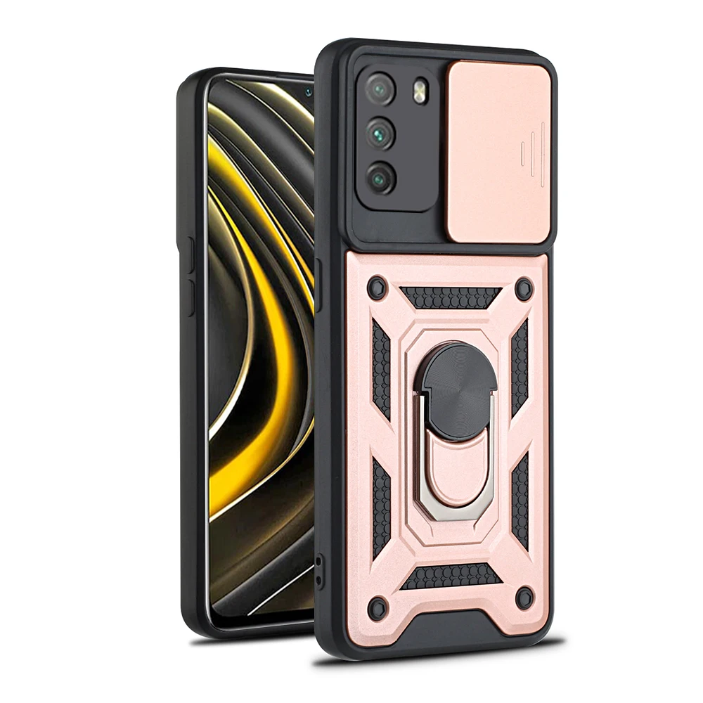 Чехол с нажимным окошком и кольцом для Xiaomi Mi Poco M3 M3Pro F3 X3 NFC X3Pro X3 NFC Pro, задняя крышка, защитная стеклянная крышка 6,53 "M2010J19CG