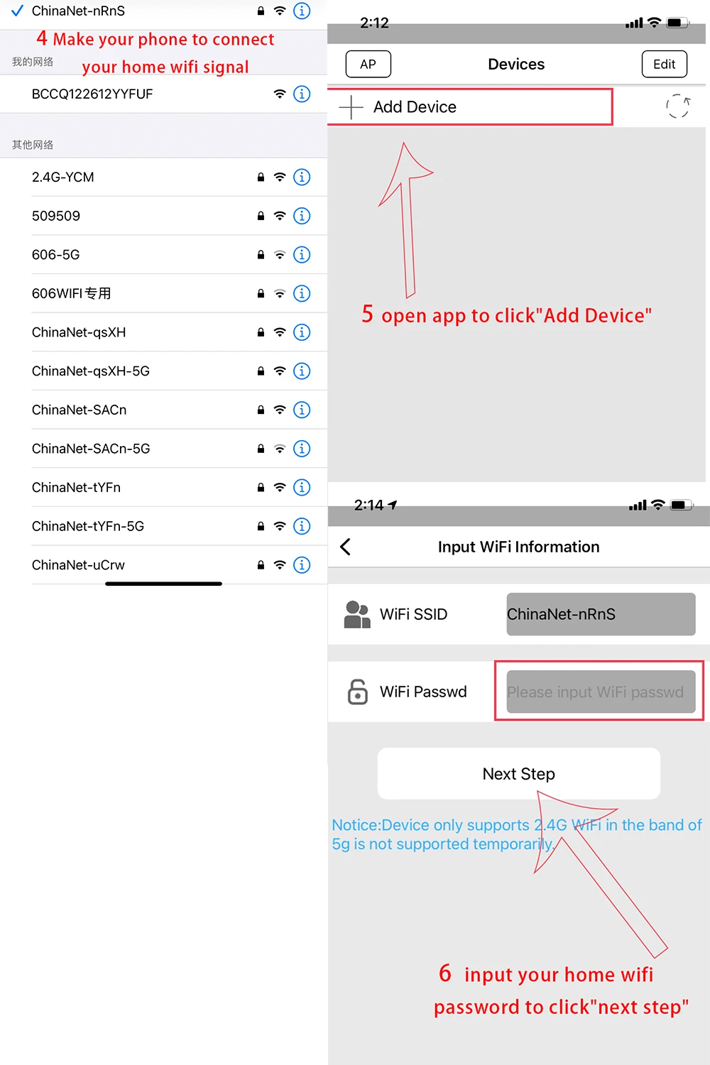 6. Введите ваш домашний wifi пароль, чтобы нажать «следующий шаг»