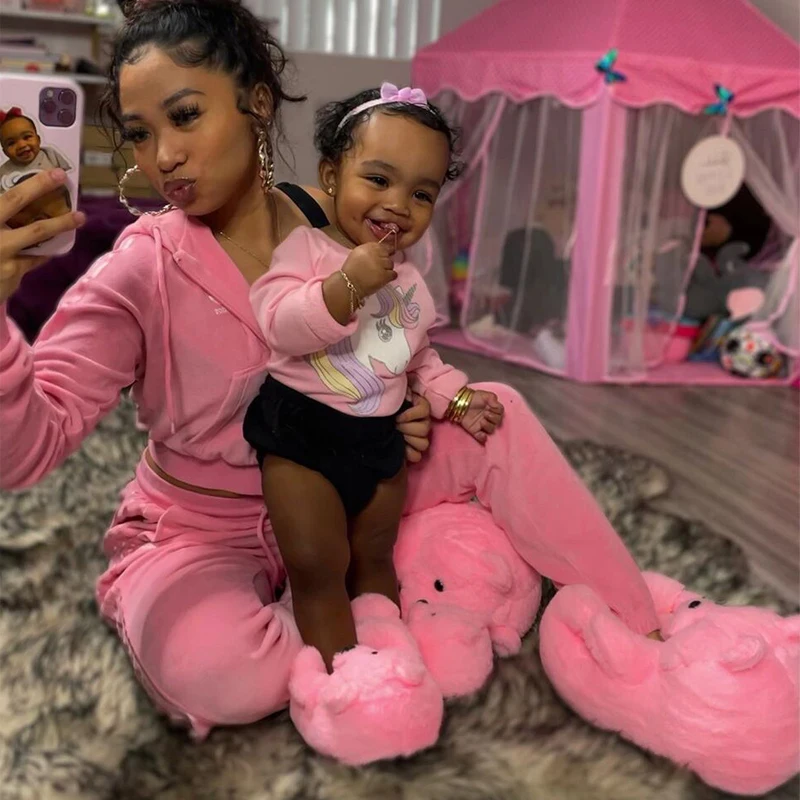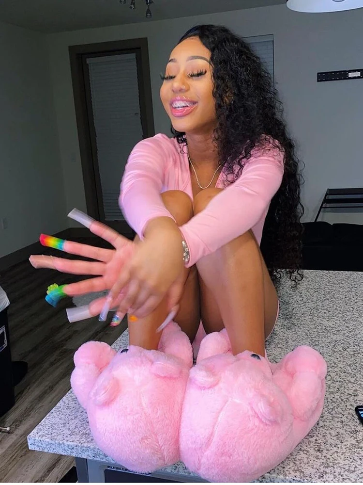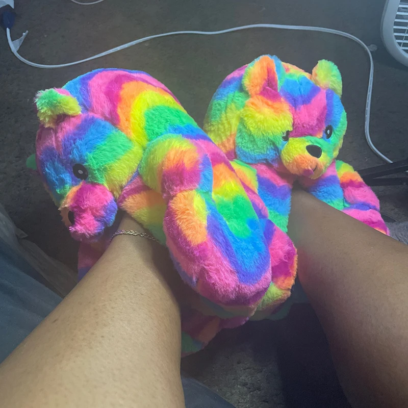 Женские Симпатичные плюшевые шлепанцы, теплые хлопковые тапки в спальню, блестящие цвета, мишка, сланцы