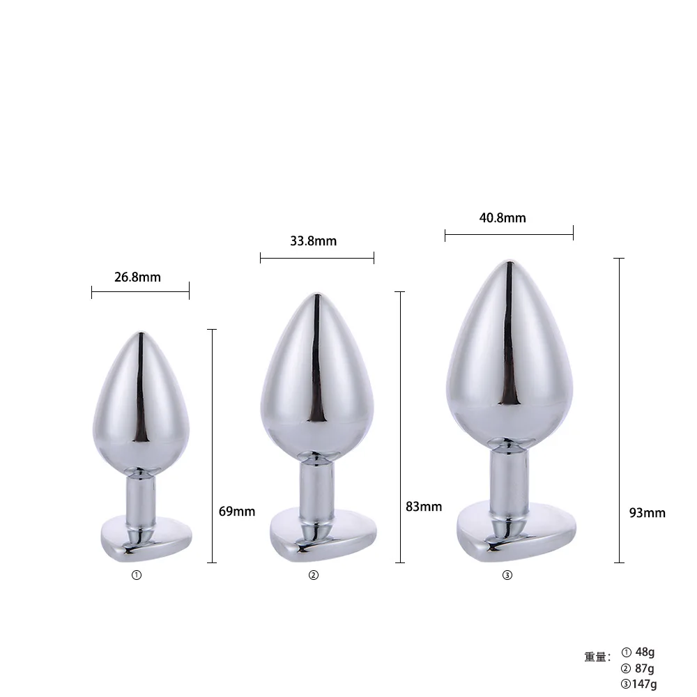 Анальная пробка 3 размера в форме сердца, из нержавеющей стали, кристальная Анальная пробка, съемные детские анальные секс-игрушки, предстательные игрушки