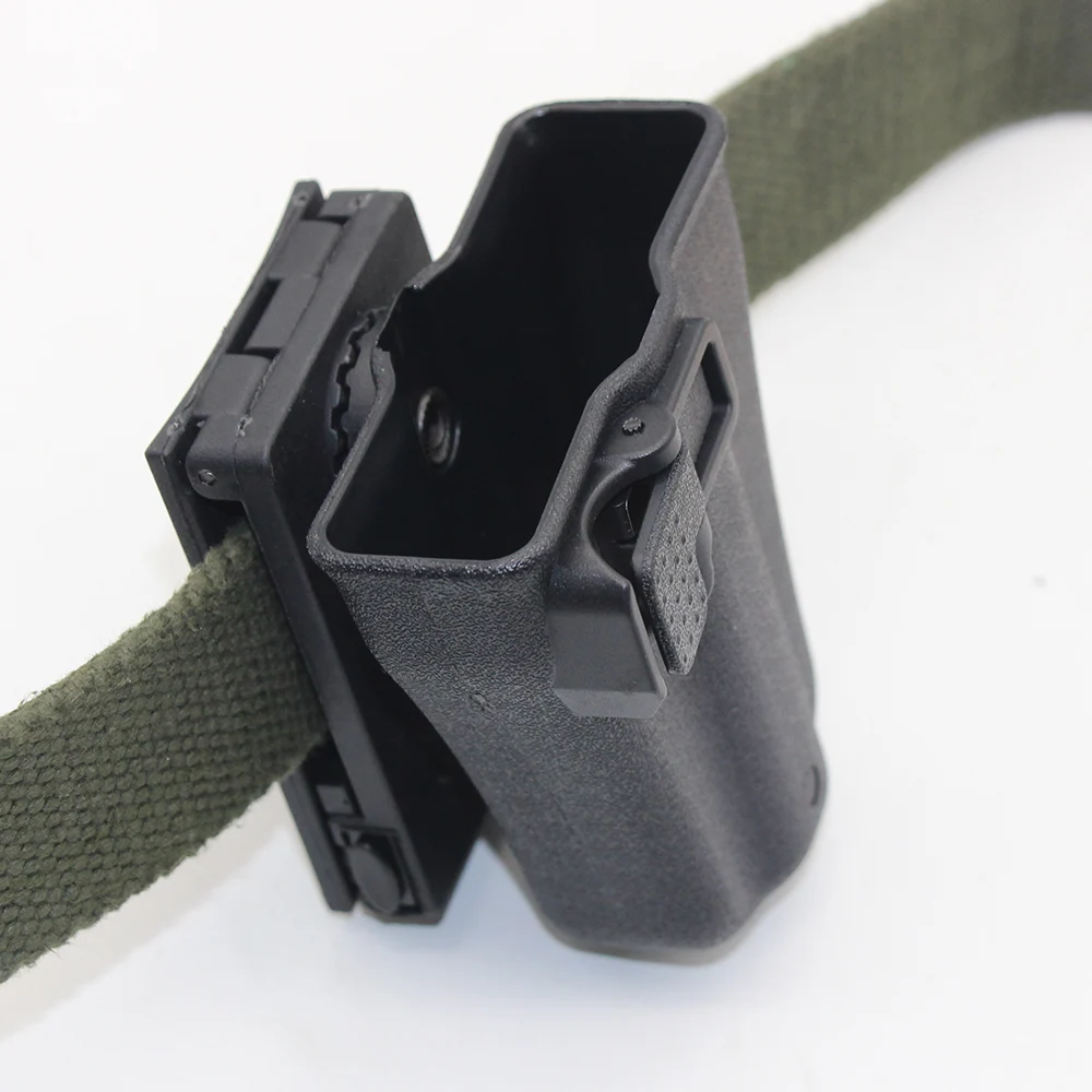 Подходит для 3,8 см & 5,5 см Ширина ремень1. Изготовлен из полипропиленового материала, хорошо эластичен, не поврежден;2. Анти-высокая и низкая температура, и анти-непрерывная сильная трещина;3. Задняя сторона с двумя различными петлями для ремня разного размера;4. С отворотом большого пальца для фиксации манжеты;5. Очень быстро, чтобы привлечь наручников от чехол