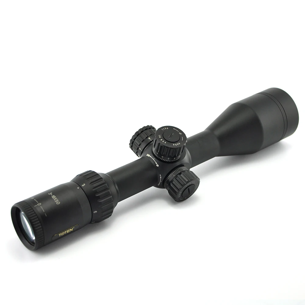 Toten 3-18x50 FFP является 100% водонепроницаемым и противотуманным, он имеет первую плоскость фокуса от 10 ярдов до бесконечности, регулировочную систему блокировки башни; Он может использоваться во всех видах охоты. It'sfully многослойная оптика 30 мм трубка обеспечивает превосходную яркость и выдающуюся повторяемую точность, она с высокой ударопрочностью для. 308 .30-06 Cal.