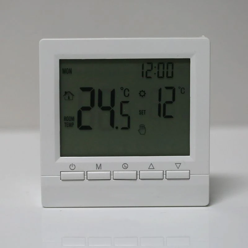 LCD газовый котел термостат 3A Еженедельный программируемый комнатный нагревательный температурный контроллер 86x86 мм ME83LОписание товараТермостат газового котла ME83 оснащен ЖК-цифровым дисплеем. Это с 1,5 в двух секций батарейки типа АА. Он используется для управления котлами для запуска или остановки работы для регулировки температуры. Термостат определяет температуру в помещении, когда фактическая температура в помещении ниже установленной температуры, термостат контролирует бойлер, чтобы начать работу. Затем термостат контролирует бойлер, чтобы остановить работу, когда фактическая температура в помещении выше вашей установленной температуры.Особенности продукта1) удобно устанавливать на стену или стоять где-то.2) беспроводное питание, питание от аккумулятора AA, можно разместить в любом месте.3) может установить 5 + 2 еженедельных программируемых.4) Блокировка для детей, чтобы избежать неправильной работы.5) функция антифриза.Характеристики продукта100% новое состояние1. Рабочее напряжение: 2x1,5 V AA батарея (не входит в комплект)2. Потребляемая мощность: <150uW3. Диапазон контроля температуры: 5 ~ 99 ℃, (заводская установка 5 ~ 35 ℃)4. Диапазон температур: 5 ~ 99 ℃5. Точность контроля температуры: ± 1 ℃6. Размер: 85x85x28 мм7. Датчик температуры: ВстроенныйПосылка включает в себя:1 х газовый котел термостат2 крепежных винта1 x Инструкция на английском языке