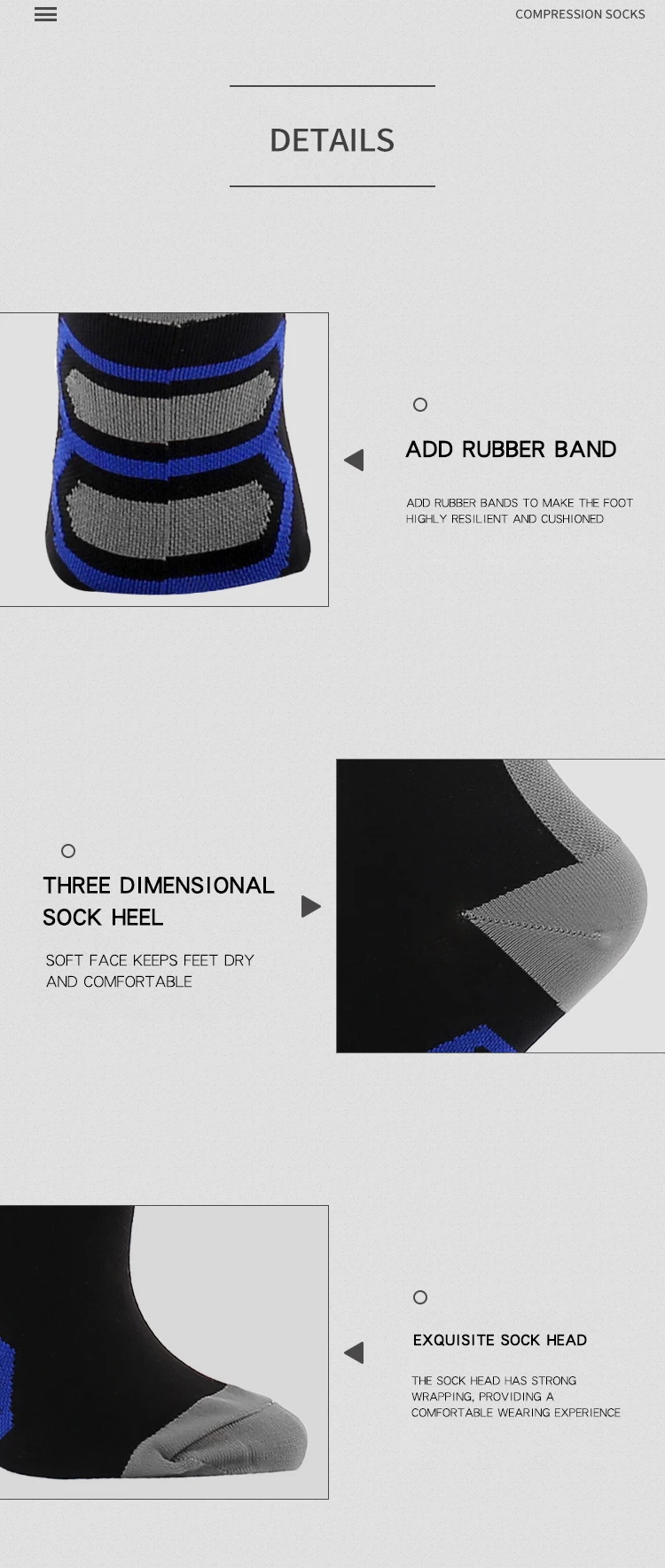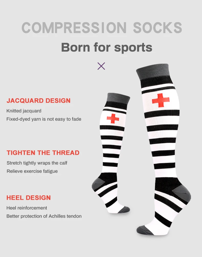 Почему все больше и больше людей любят носить компрессионные носки сейчас?Независимо от того, являетесь ли вы спортсменом, который хочет преуспеть в игре, который сидит долгое время во время путешествий или на работе, или кто-то, кто борется с болью из-за хронического состояния, поддержка правильного кровотока на ноги имеет первостепенное значение. Наши компрессионные носки разработаны с новейшей технологией сжатия от свода до икры, Обеспечивает поддержку голени и мышц ног, помогает сохранить приток крови, чтобы повысить атлетические показатели и облегчить боль из-за ряда условий.Снижает риск травмОбеспечивает дополнительную компрессионную поддержку для стабилизации свода, лодыжки и мышц. Минимизирует колебания мышц и micro-tearing.Prevents спазмов и травм. Усиленная поддержка может предотвратить травмы из-за плохой силы мышц, особенно во второй половине марафона.Улучшает вашу производительностьДля спортсменов на выносливость ключевым механизмом является «икроночный мышечный насос»-с каждым шагом или педальным ударом, сжимающий и разжимающий телячьи мышцы сдавливает кровь обратно к сердцу. Наши компрессионные носки обеспечивают дополнительное сжатие, которое усиливает это действие накачки, ускоряя поток очень необходимого кислорода для работы мышц. Ускоряет кровообращение к сердцу и избавляет от метаболических отходов от мышц.Помогает быстрее восстановитьсяСтимулирует кровоток и улучшает доставку кислорода в ваши мышцы. Уменьшает выработку молочной кислоты, мышечную болезненность и чувство тяжеловесности в ногах и ногах. Более быстрое восстановление от «задержки начала мышечной болезненности».Помогает предотвратить или снять отекиПомогает контролировать отек через улучшенную циркуляцию и ускоряет удаление клеточных отходов. Уменьшает отеки и усталость от длительного сидения или стоя. Идеально подходит для беременных женщин и тех, кто сидит или стоит в течение длительного периода во время путешествий или на работе.Помогает облегчить боль в подошвенном фасциитеРазработан с компрессией, чтобы помочь в управлении болью и облегчении от подошвенного фасцита, пятки шпоры и боли в суставах. Помогает при стоянии и ходьбе. Сжатие связок уменьшит воспаление, ускоряя процесс заживления.Которые могут извлечь выгоду из компрессионных носков:1. Беременная женщина2. Спортсмены и активные люди занимаются спортом, бегом, пешим туризмом, велоспортом, футболом и т. д.3. Частые путешественников или тех, кто летает на длинном самолете4, рабочие места, которые требуют от вас быть на ногах много: медсестры, учителя, строительные работники, повара, линейные рабочие, ресторанный обслуживающий персонал и т. Д.5. Рабочие места, которые требуют длительного сидения: офисные работники, водители и т. Д.6. Любой, кто болеет варикозным расширением вен, отеком, подошвенным фасциитом и т. Д.