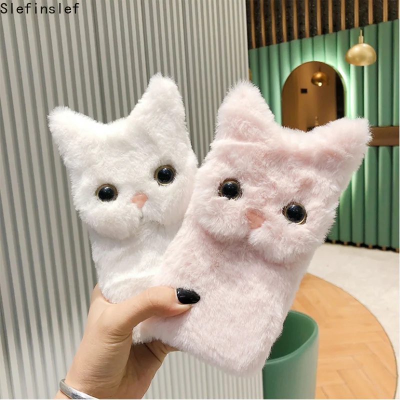 Женский пушистый чехол с котенком, теплый плюшевый чехол для Xiaomi...