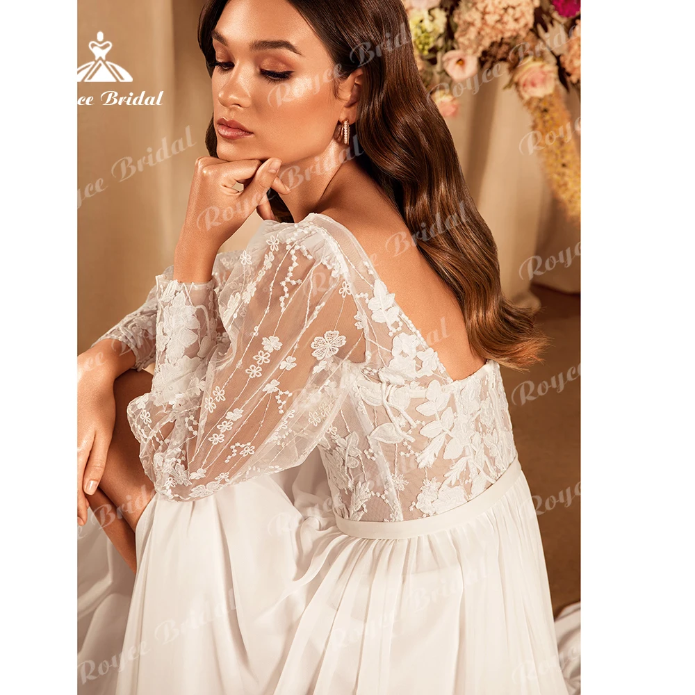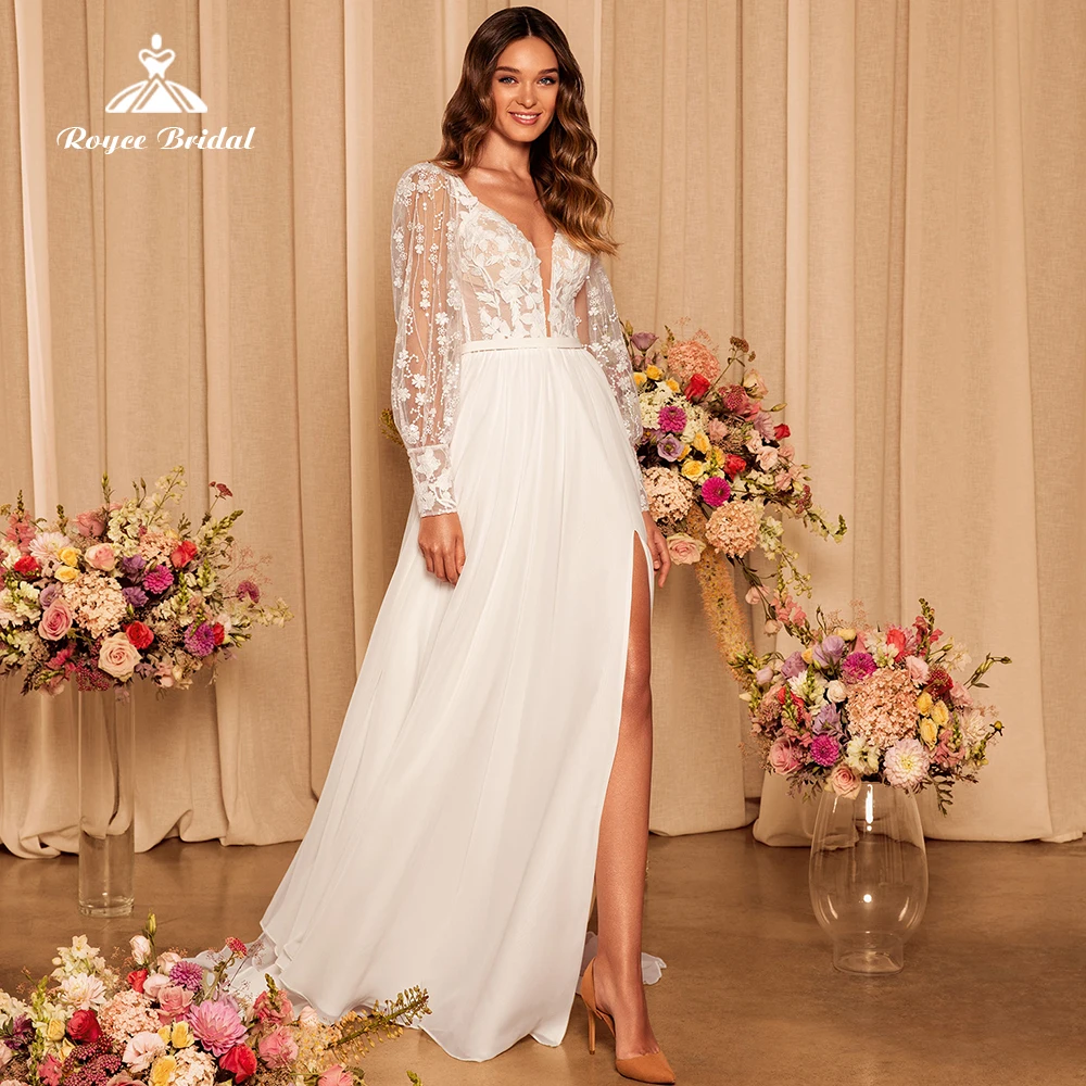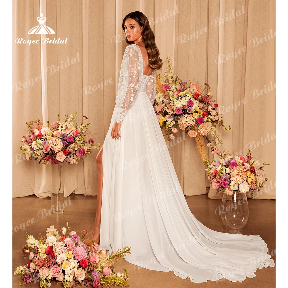 Женское шифоновое платье с длинным шлейфом, белое ТРАПЕЦИЕВИДНОЕ свадебное платье с V-образным вырезом и рукавами-крылышками, официальное платье невесты в богемном стиле, модель 2022
