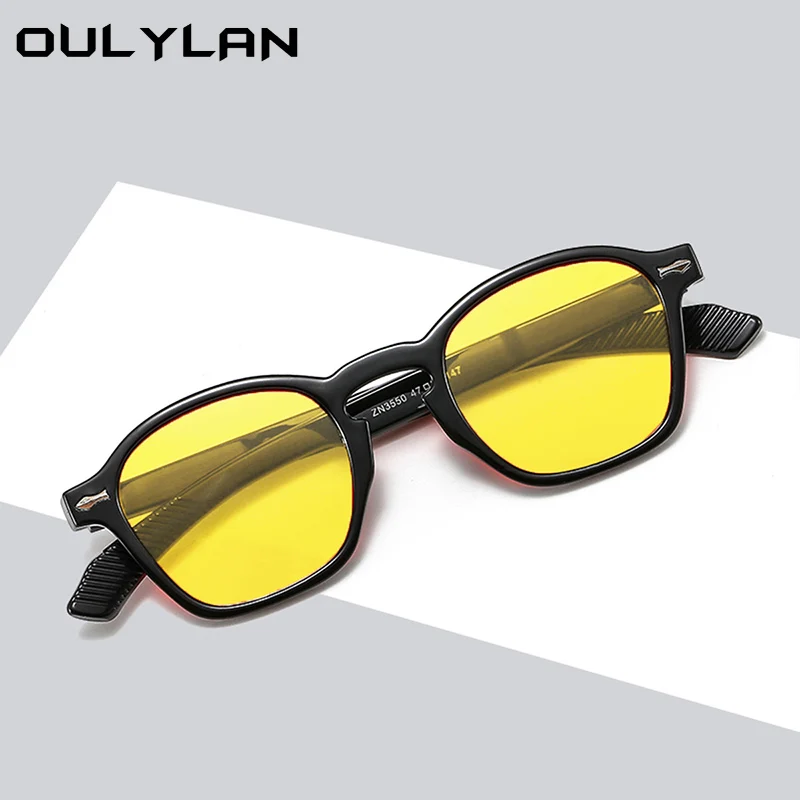 Солнцезащитные очки Oulylan мужские круглые, Классические роскошные брендовые винтажные солнечные очки желтого и черного цвета, в стиле ретро, для вождения, с защитой UV400