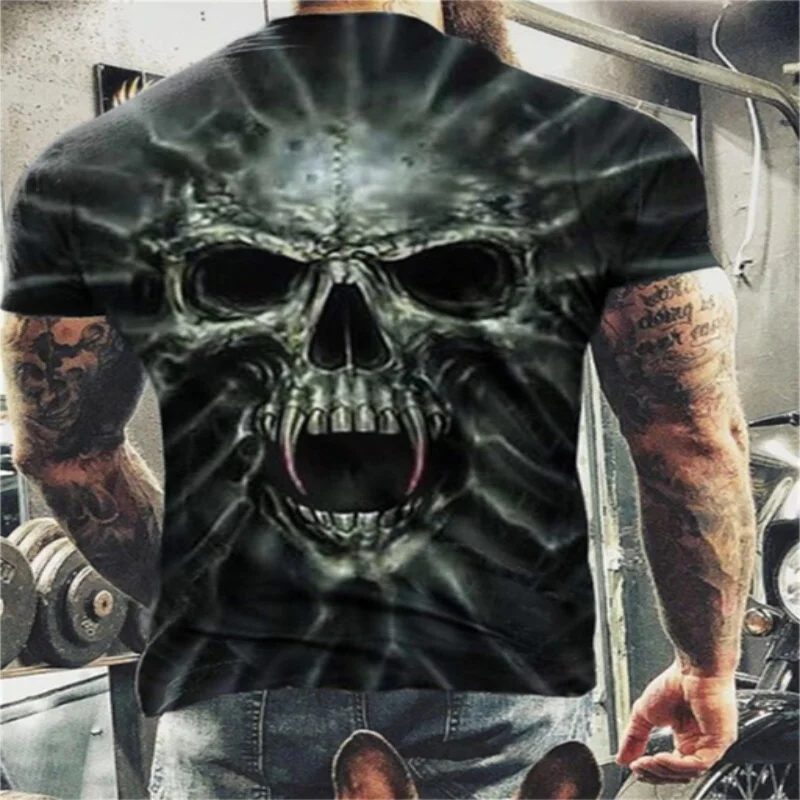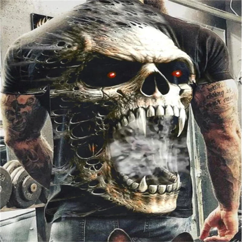 Футболка мужская оверсайз с коротким рукавом, Повседневная рубашка с принтом черепа, уличная одежда в стиле хип-хоп, топ с 3D принтом, лето 2021