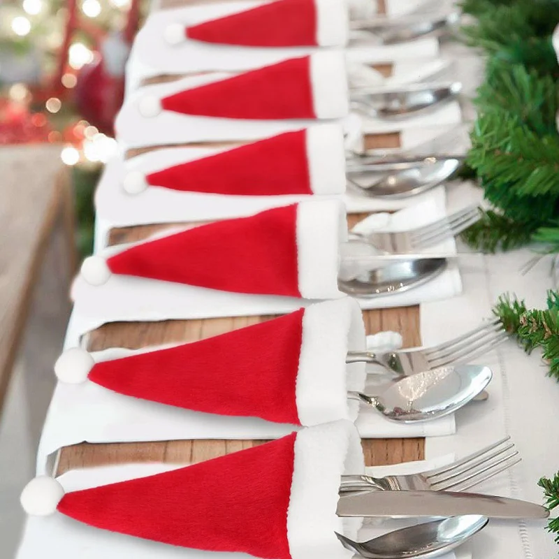 10 шт., держатель для столовой посуды, Рождественская шляпа, Рождес...