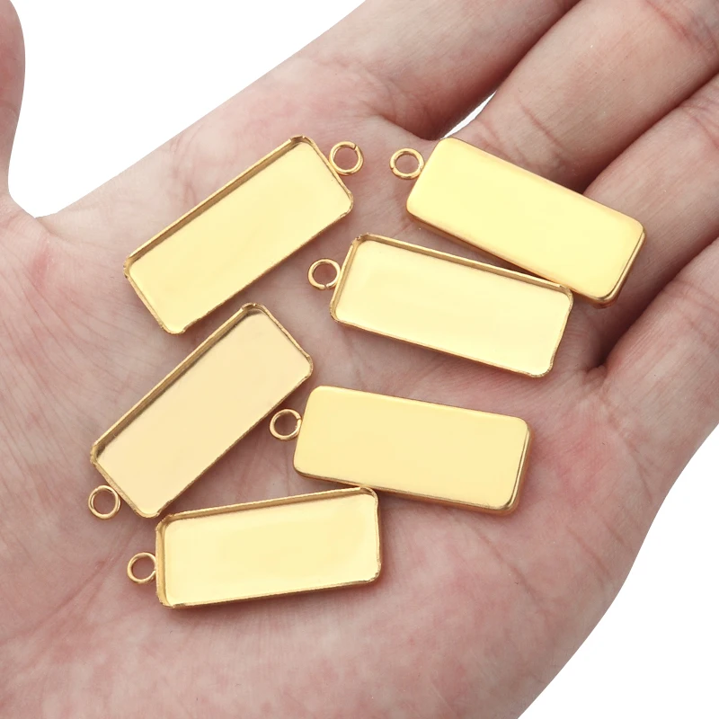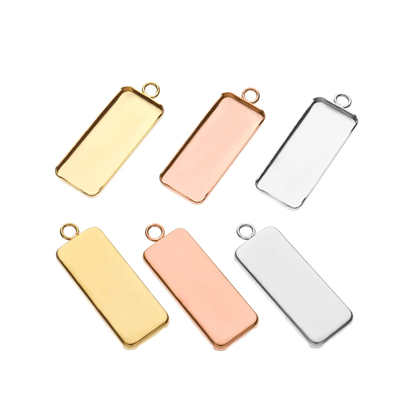 10 шт. Нержавеющая сталь прямоугольник розовое золото 10x25 мм Пустой ободок кулон кабошон база для DIY ювелирных изделийМатериал: нержавеющая стальКоличество: 10 шт./лотВес: 15 гРазмер: 10x25 ммПоиск ювелирных изделий: пустая прямоугольная подвеска