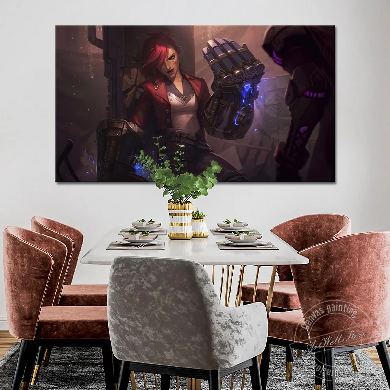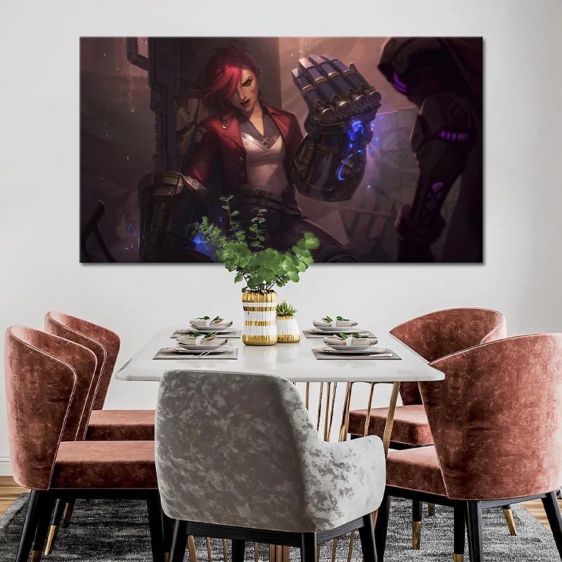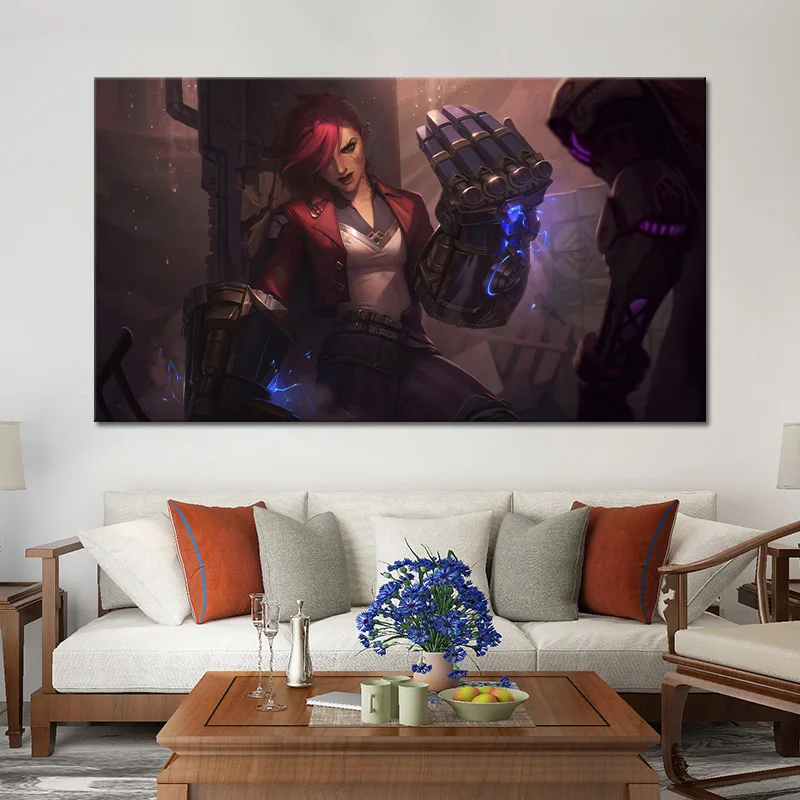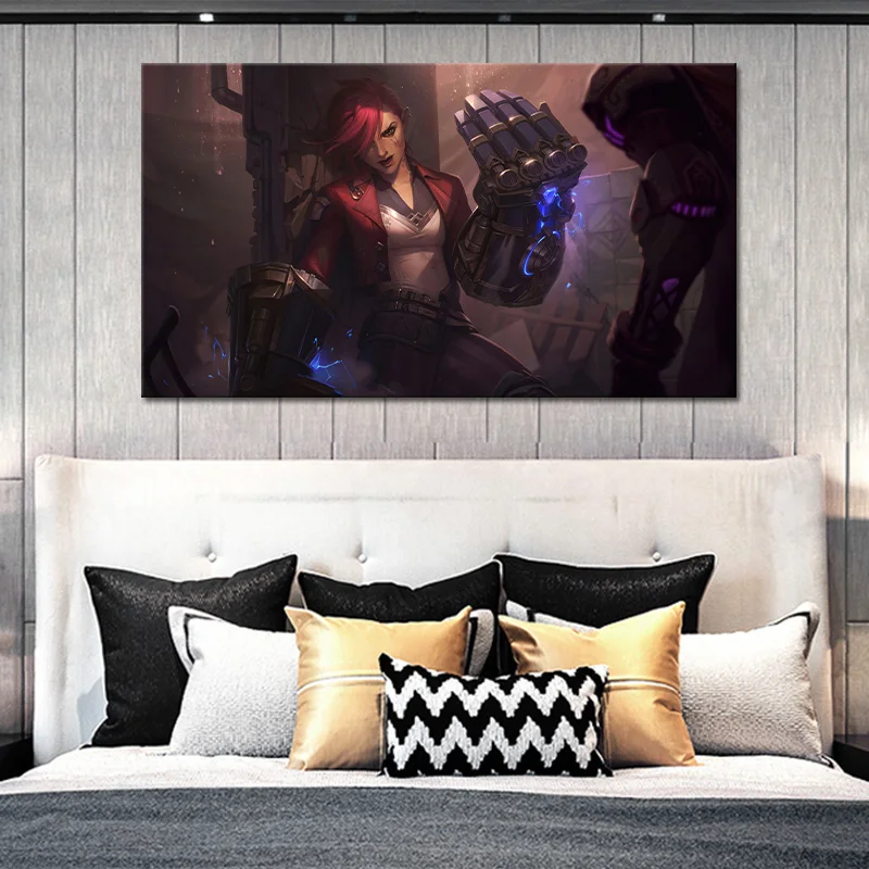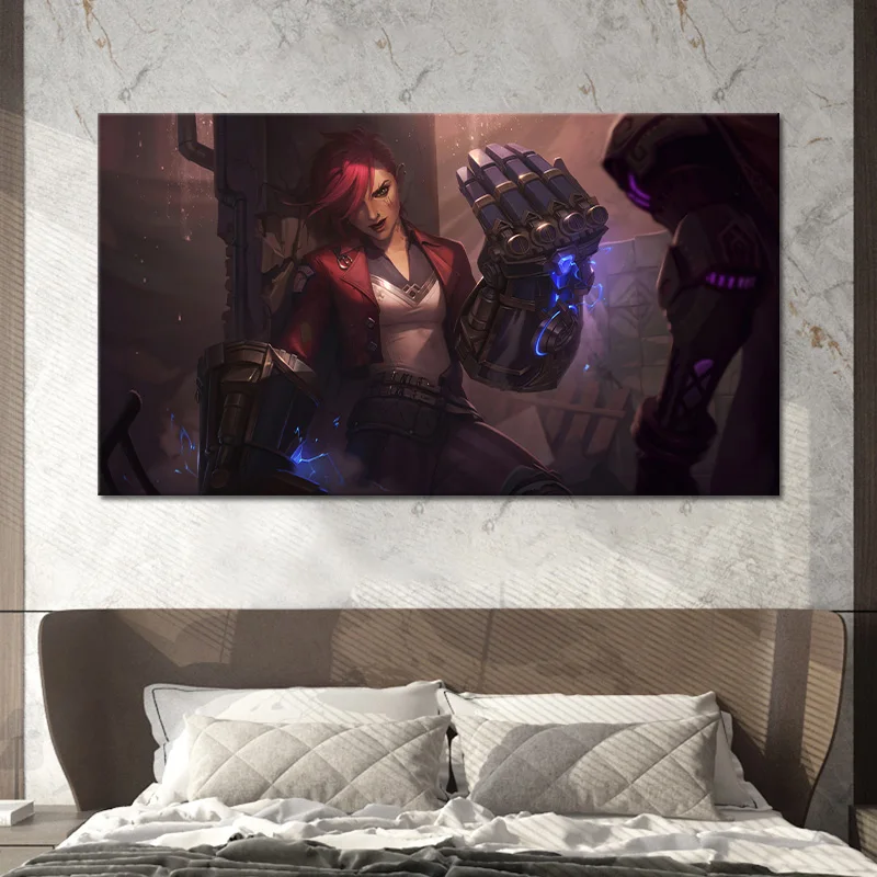 Постер для видеоигр Arcane Jinx Vi League of Legends, Картина на хо...