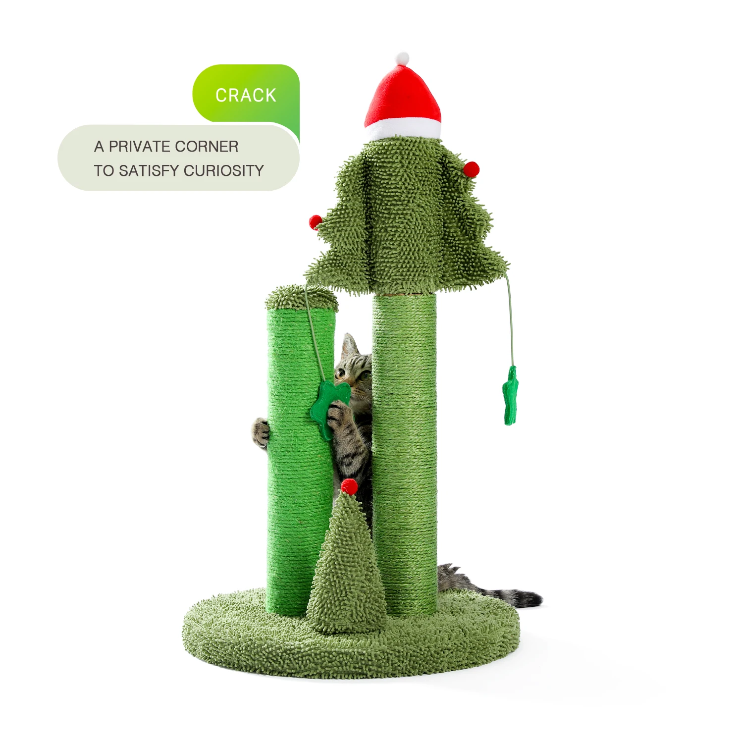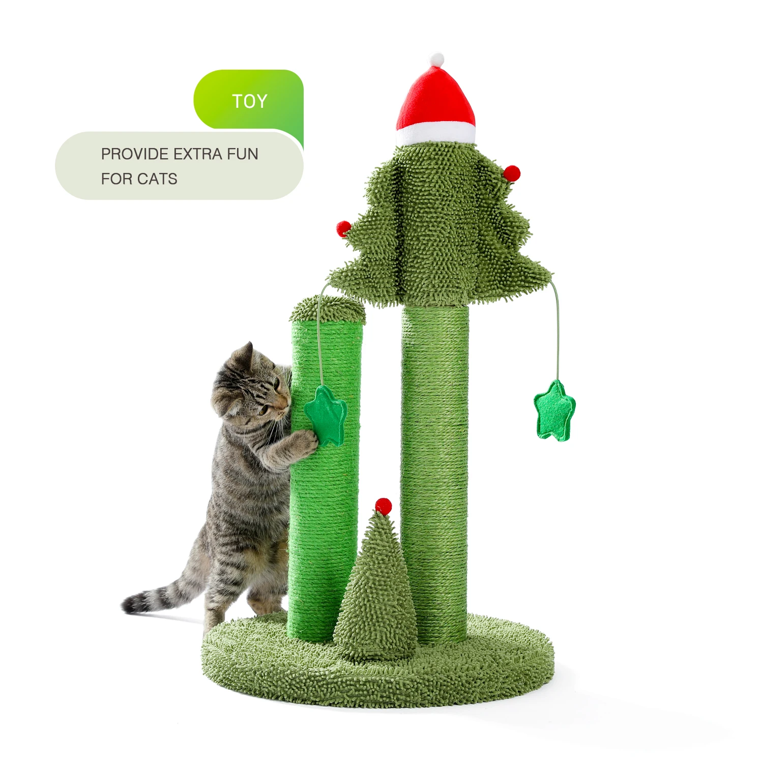 ·[Новое рождественское игровой комплекс для кошек]: эти высокие милый кот царапками пилочка для ногтей с 2 царапин столбы покрыты зеленым натуральная сизалевая веревка и ковер, ceder форма привлекают домашних животных, может быть в современном стиле.