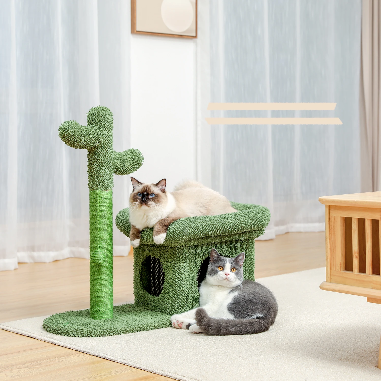 Кошачье дерево С КАКТУСОМ, кошачья башня с сизалевой когтеточкой, доска для кошек в помещении, кошачий домик для кошек, игровой домик с окунем, игрушка в виде корзины