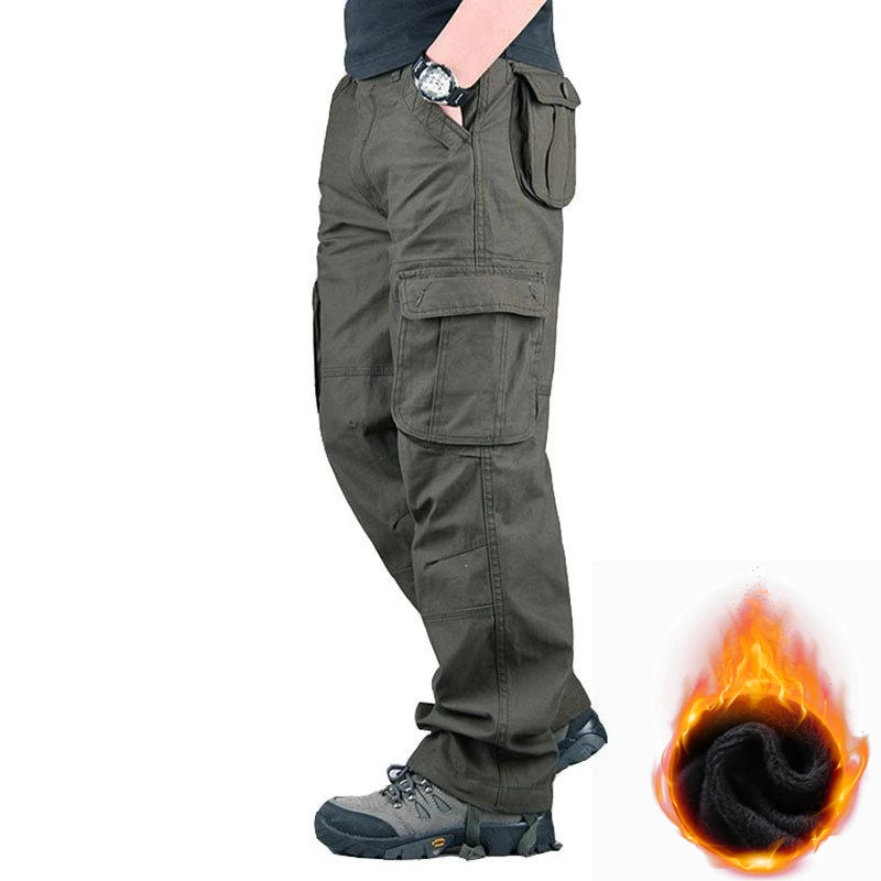 Мужские зимние теплые плотные брюки, двухслойные флисовые повседневные брюки, Длинные хлопковые брюки в стиле милитари со множеством карманов, мужские мешковатые брюки-карго