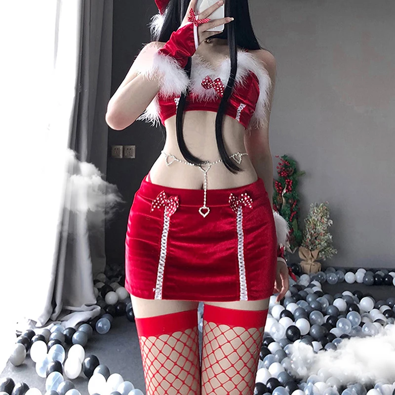 Рождественские красные чулки для женщин, нижнее белье, сексуальное нижнее белье, женское нижнее белье, сетчатые чулки до колен, аниме косплей