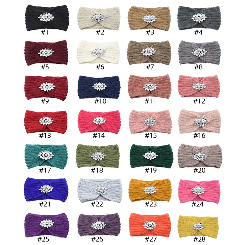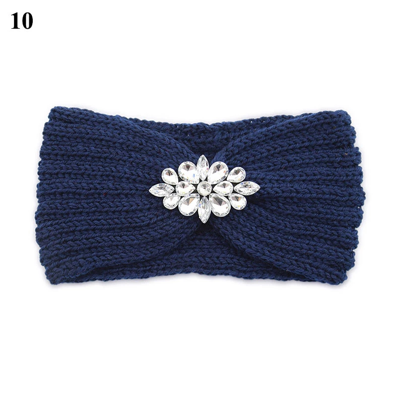 Плетеная повязка на голову, широкие аксессуары для волос, эластичная резинка для волос, с кристаллами, с цветами из страз, вязаная повязка на голову