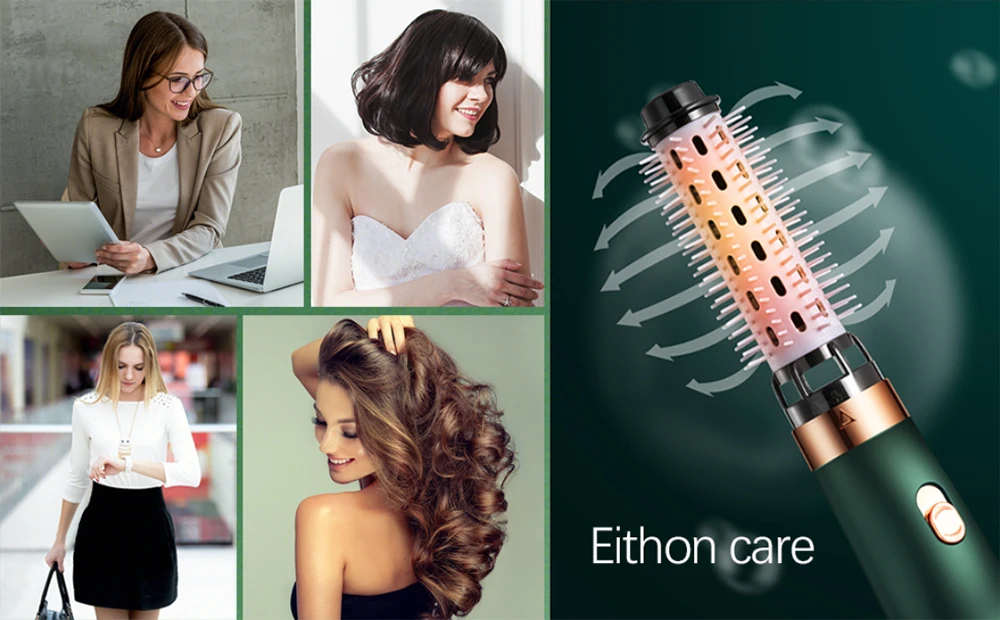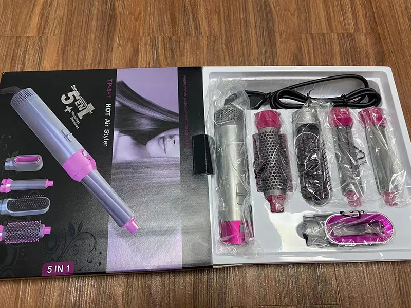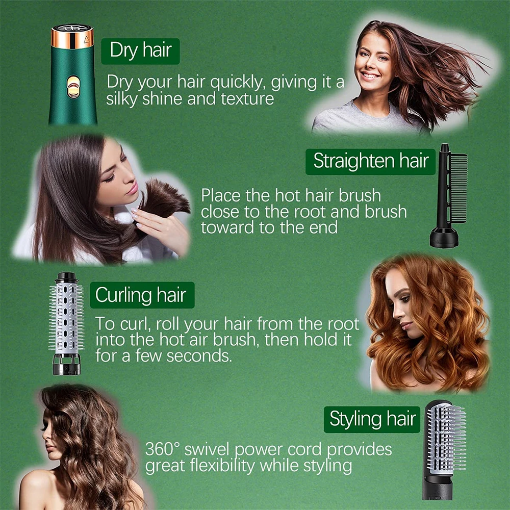 【 5 в 1 фен для волос, инструменты для укладки 】 сушилка для кистей с горячим воздухом для женщин поставляется с пятью взаимозаменяемыми насадками для кистей, которые делают выпрямление, завивку, утомление и массирование кожи головы ветерком. Сочетая выдувную сушку с стильными кистями, можно облегать разные длины волос и создавать разные стили.