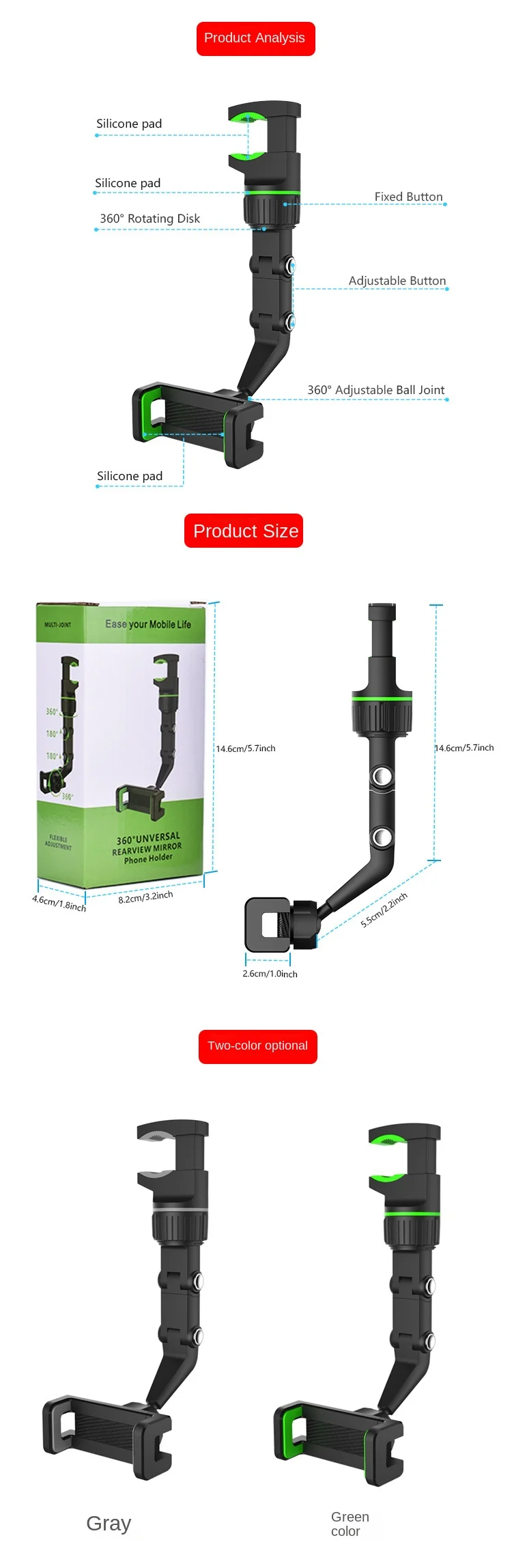 Автомобильный держатель для телефона, многофункциональный вращающийся на 360 градусов Автомобильный держатель для зеркала заднего вида, подвесной зажим для сиденья, автомобильный держатель для сотового телефона
