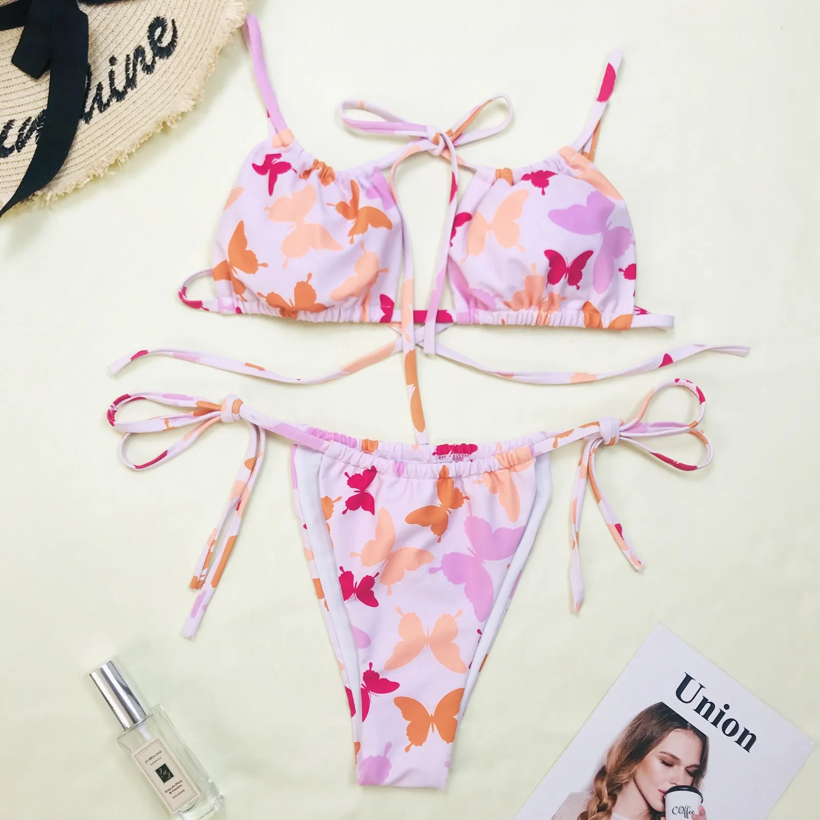 Купальник с принтом бабочки, женский купальник с принтом, новинка 2021, комплект бикини, женская пляжная одежда, купальный костюм, женский купальник
