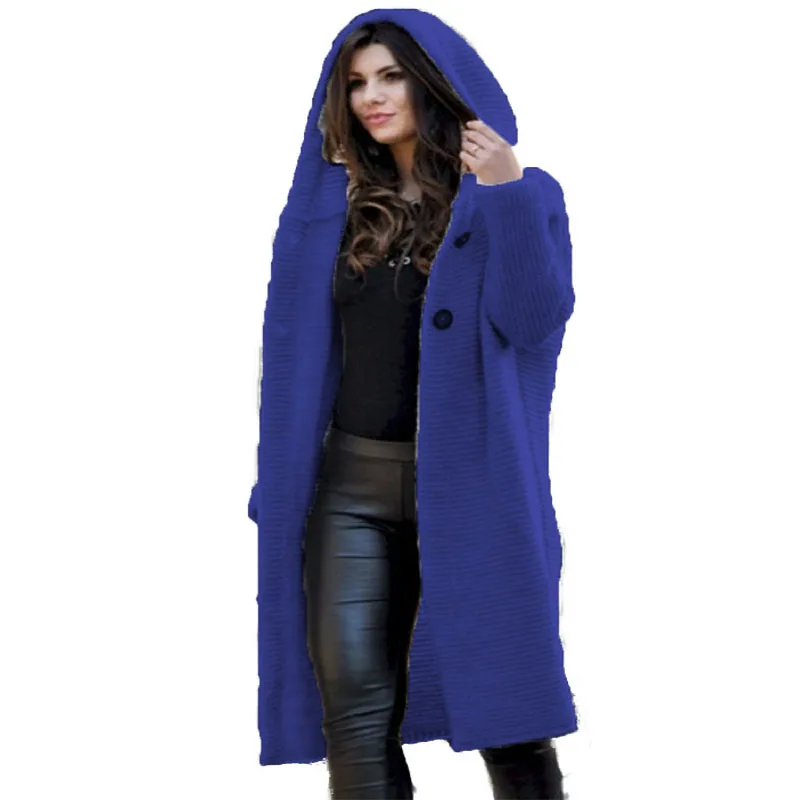 Женский длинный кардиган, однотонный вязаный свитер с капюшоном, Осень-зима 2021, Женское пальто размера плюс 5XL, Повседневная Уличная одежда, Свободное пальто