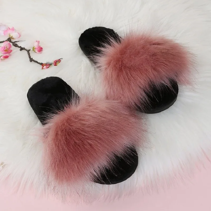 2021 модные женские меховые тапочки, женская обувь, Плюшевые Пушистые сандалии из лисьего меха, женские меховые тапочки, зимние теплые тапочки