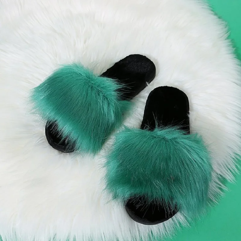 Домашние женские меховые тапочки, пушистые мягкие пушистые шлепанцы...