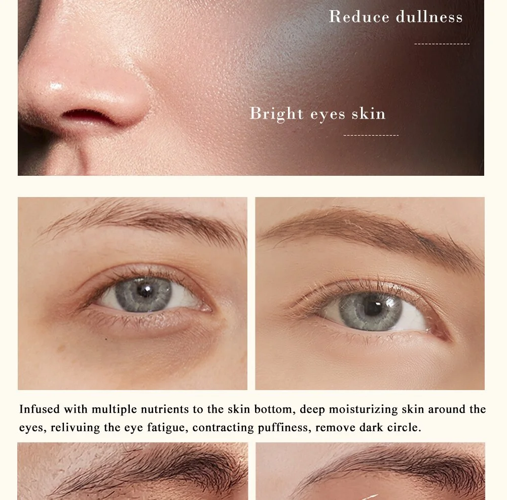 【Function】 подтяните кожу вокруг глаз, мгновенно Увлажняйте и заполняйте морщины, затягивайте и Боритесь с морщинами, восстанавливайте кожу и создавайте нежную кожу. Глаза выглядят свежее и моложе.