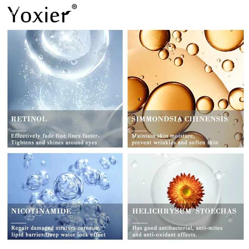 Ретинол-эффективно выцветает тонкие линии быстрее, заботится о коллагене, подтягивает и блестит вокруг глаз.