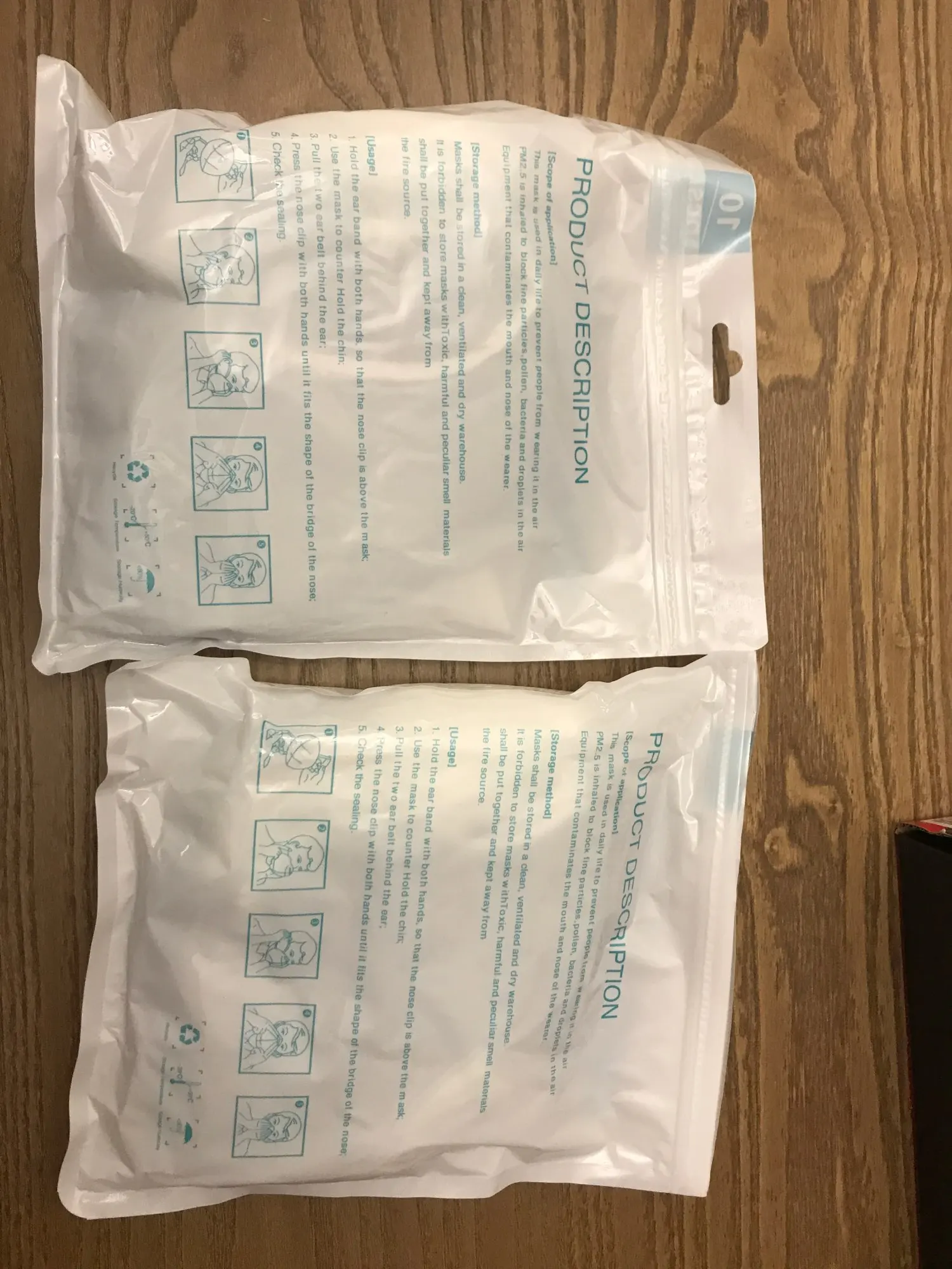 Ha llegado muy rápido, son diez paquetes de mascarillas con diez mascarillas en cada paquete. todavía no las he utilizado por lo que no puedo decir mucho más.