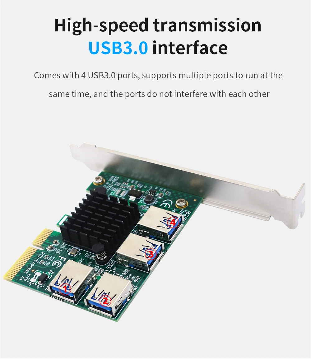 TISHRIC PCI Express Multiplier PCI-E Riser 010/011 Card PCIE 4x1 to 4 USB 3,0 16x Riser для видеокарты для ETH Mining Miner