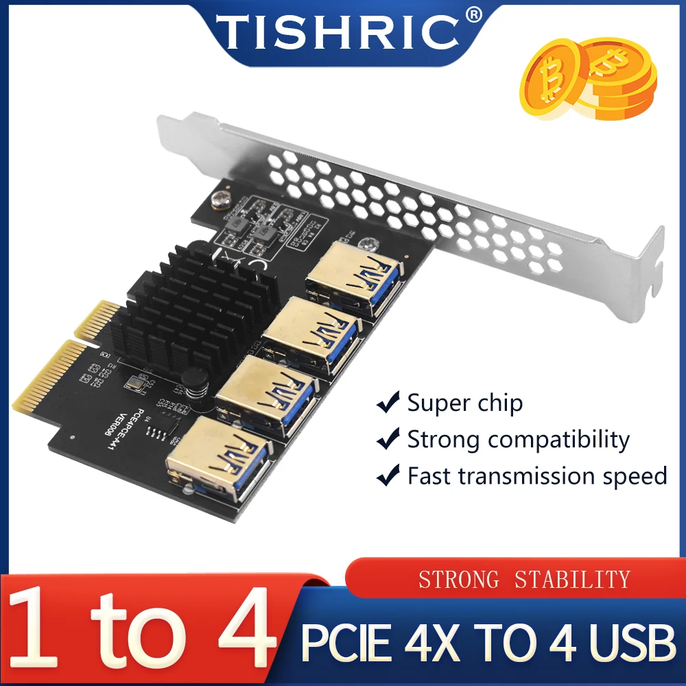 TISHRIC PCI Express множитель PCI-E Райзер 010011 карта PCIE 4x1 до 4 USB 3,0 16x Райзер для видеокарты для майнинга ETH