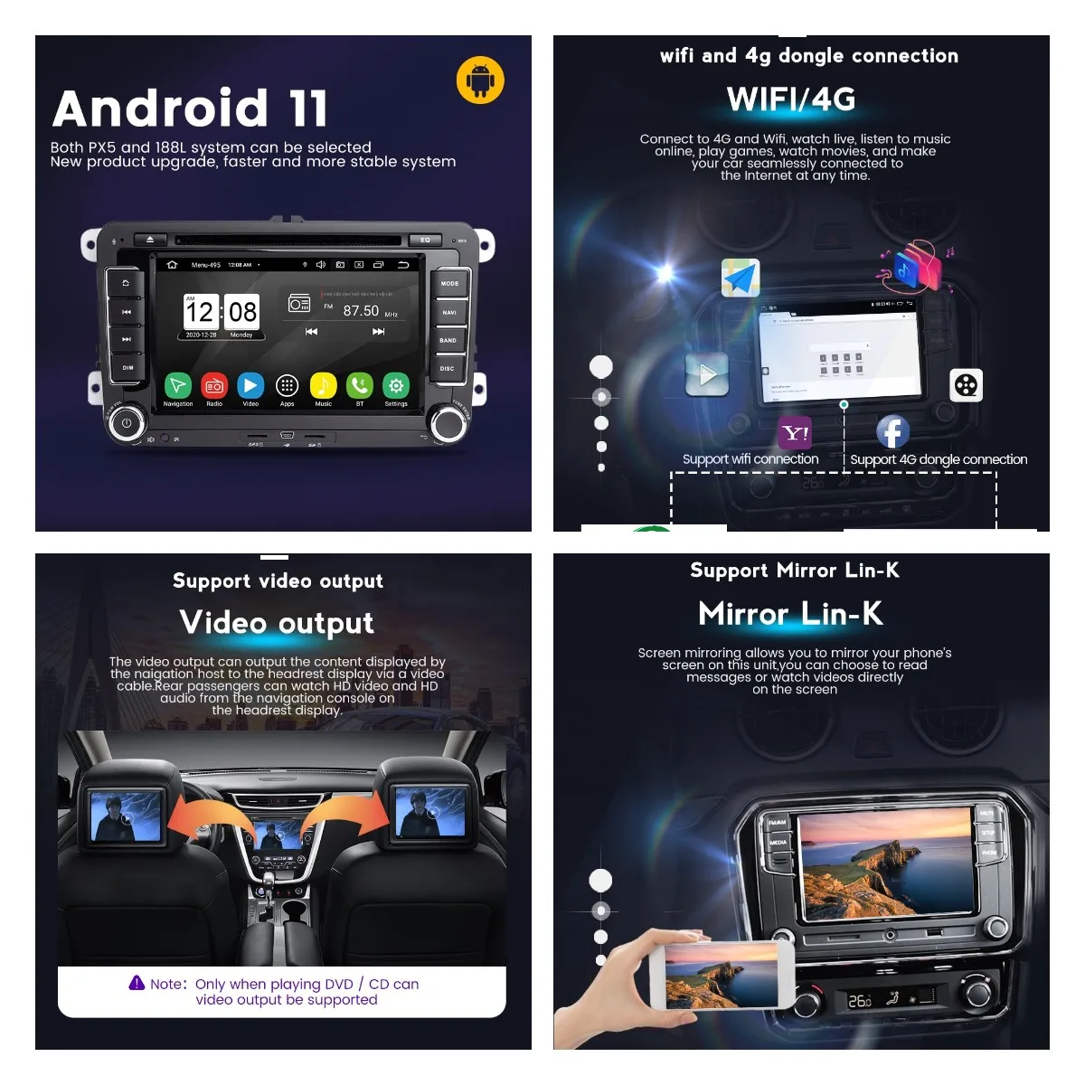 Подключайтесь к 4G, вы можете смотреть в режиме реального времени, слушать музыку онлайн, играть в игры, смотреть фильмы и в любое время легко подключать свой автомобиль к lnternet.
