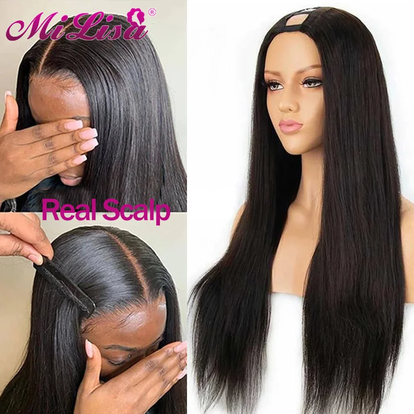 Прямые волосы Mi Lisa, парик с U-образной пряжкой, человеческие вол...