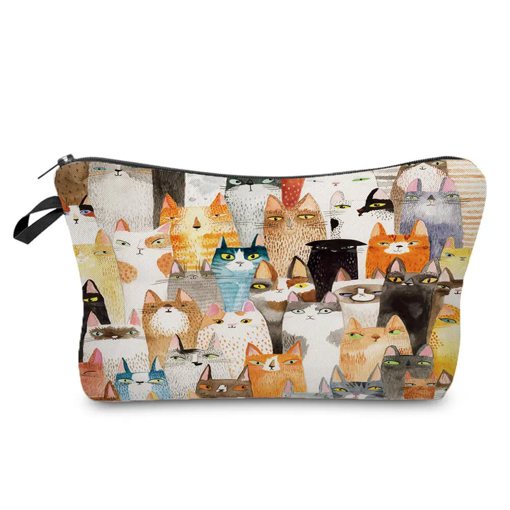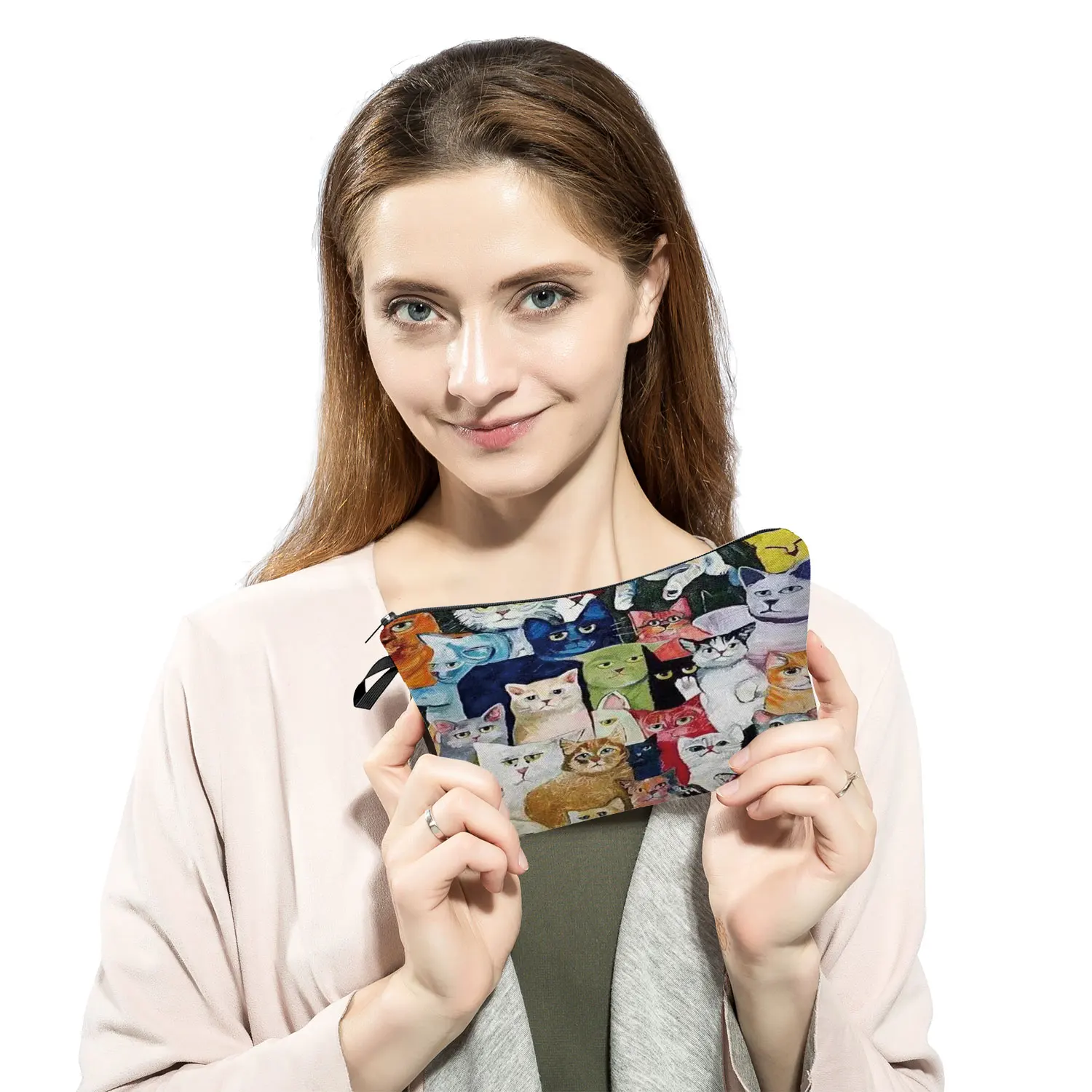 Вместительная косметичка с милым мультяшным принтом кота, модные женские косметички, водонепроницаемая косметичка для путешествий, Дамская моющаяся косметичка